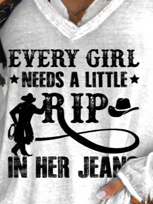 Women's Every Woman Needs A Little Rip In Her Jeans Printed Long Sleeve T-Shirt