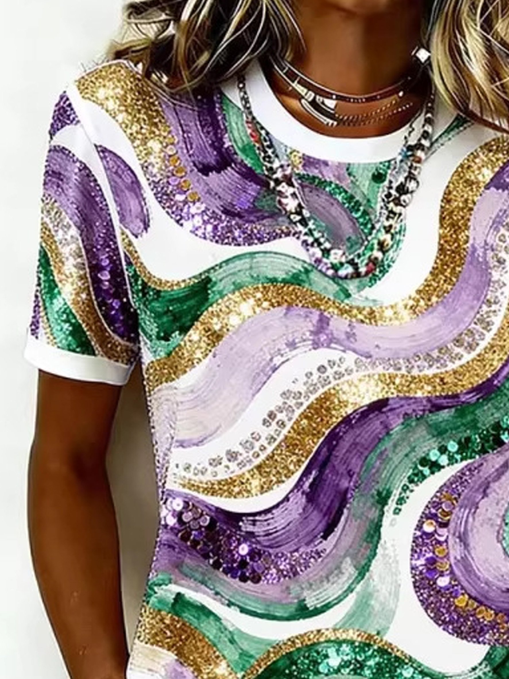 Carnival Theme 3D Print Crew Neck Short Sleeve Casual T-Shirt