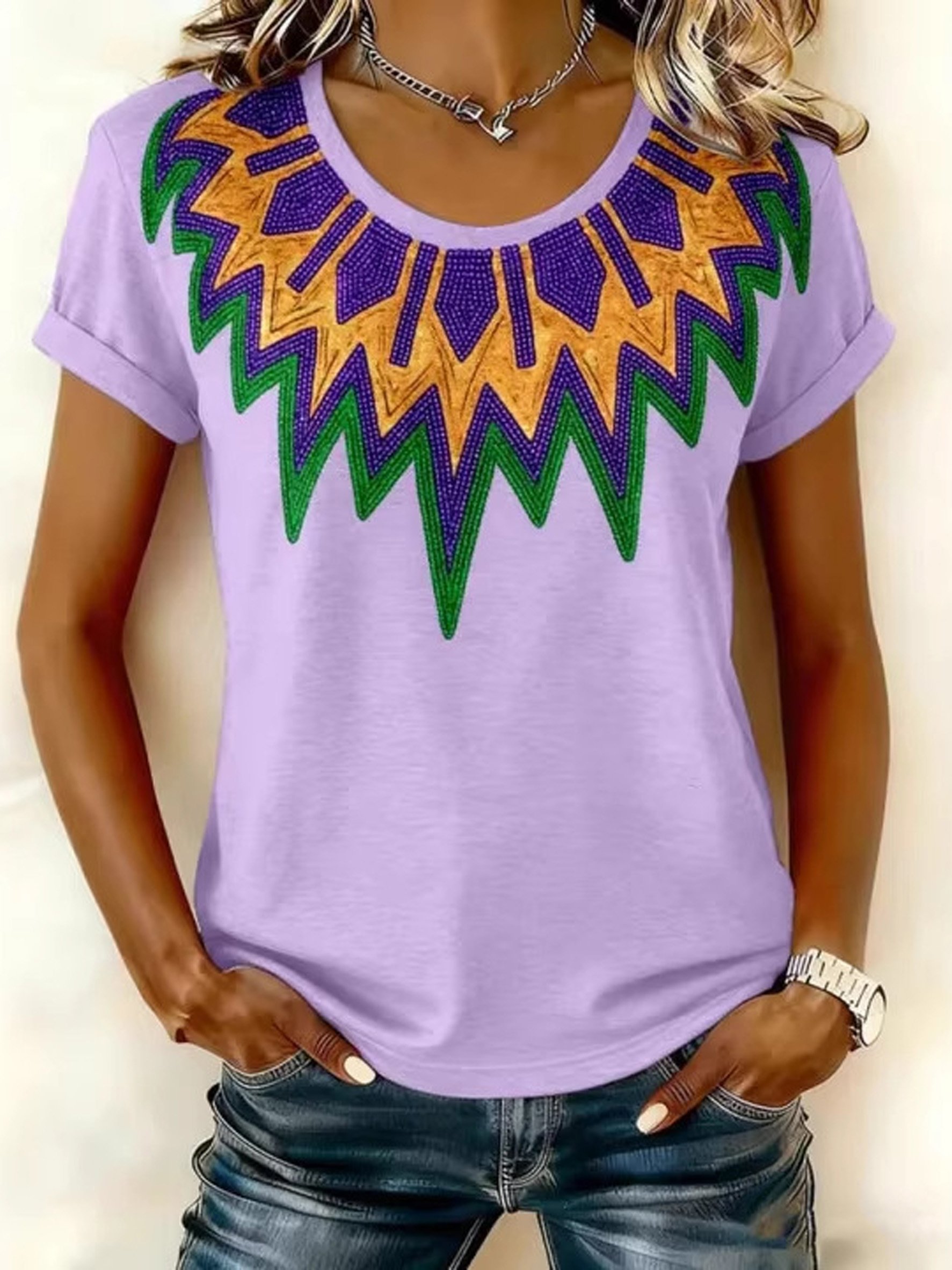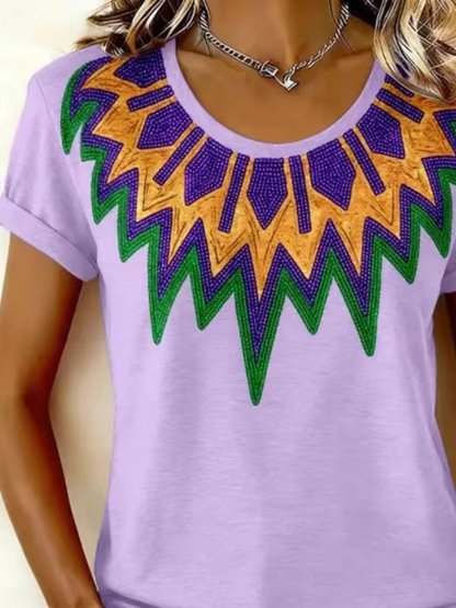 Carnival Theme 3D Print Crew Neck Short Sleeve Casual T-Shirt