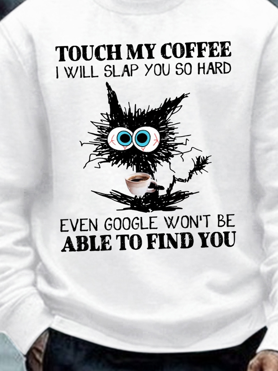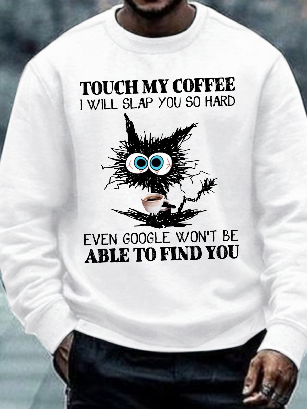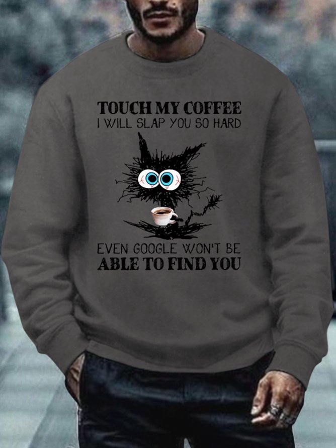 Men's Funny Coffee Letter Black Cat Sweatshirt