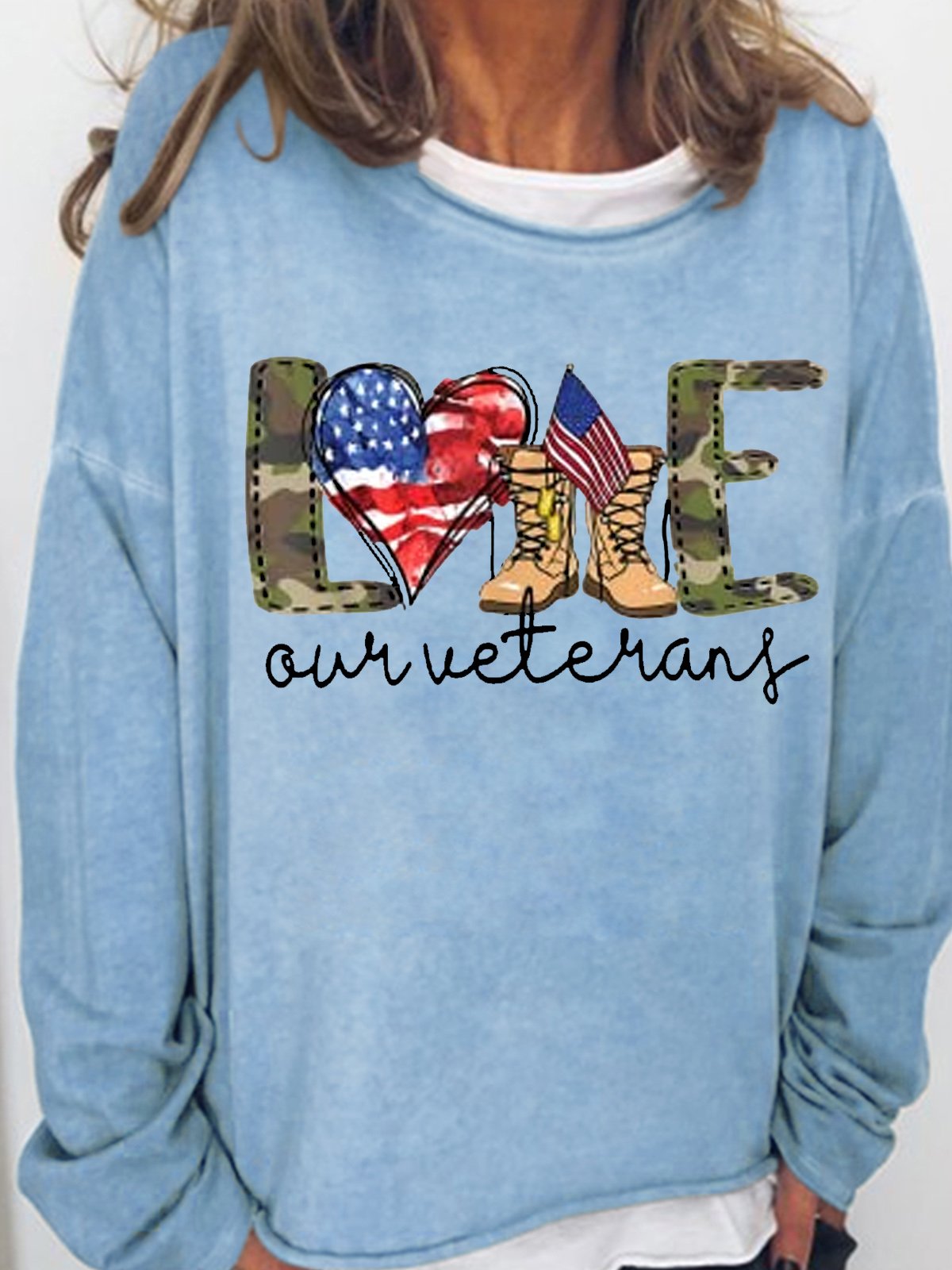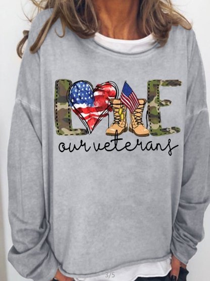 Women's Love Our Veterans US Military Gifts Casual Letters Sweatshirt