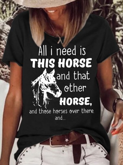 Women's Horse Lover Crew Neck Casual T-Shirt