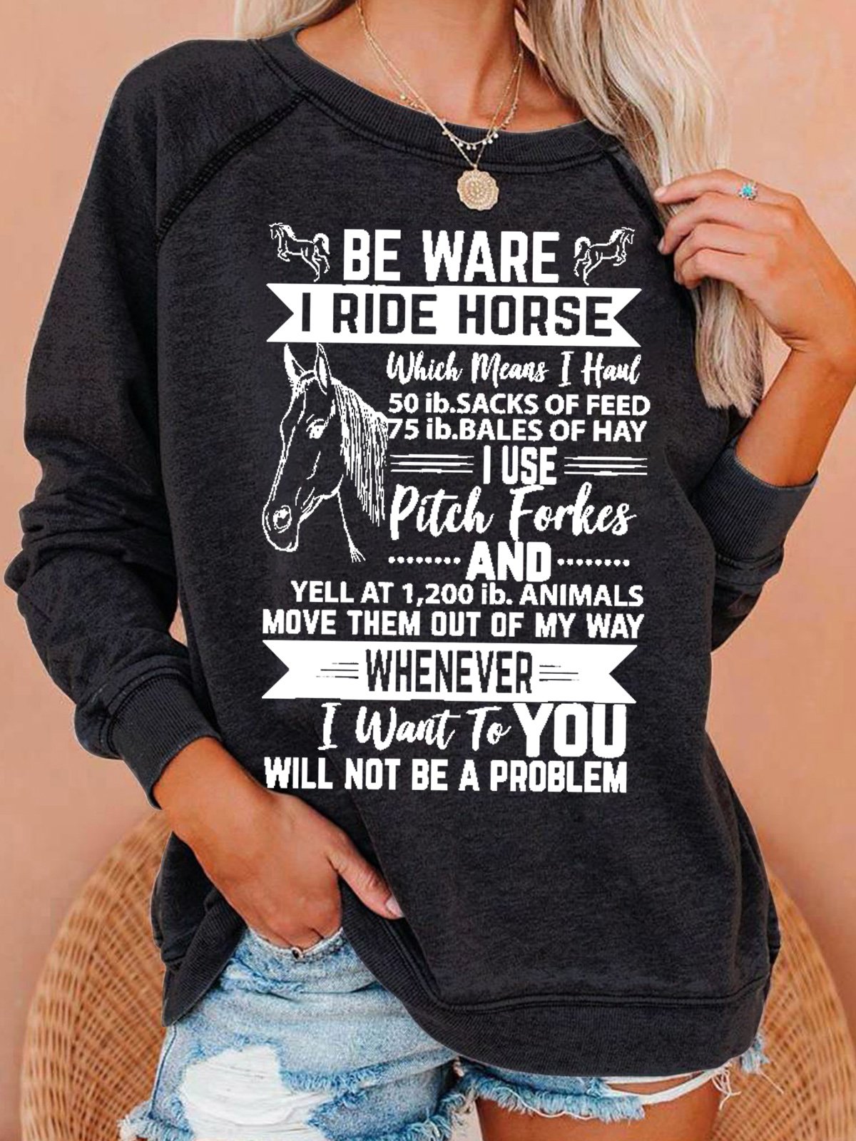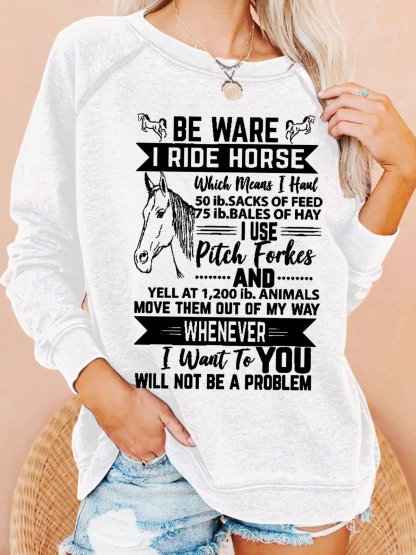 Womens Beware I Ride Horses Horse Riding Funny Quotes Casual Sweatshirts