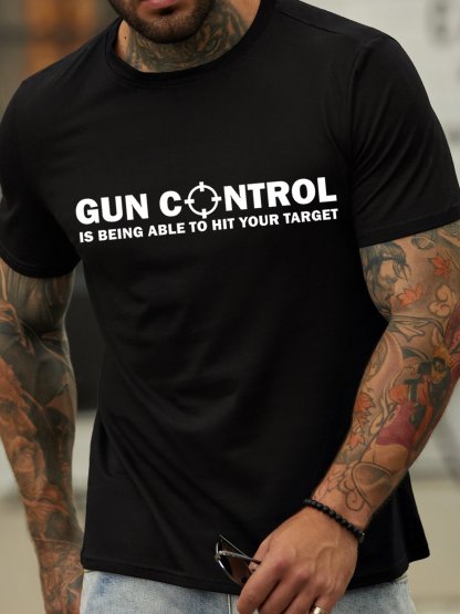 Mens Cotton Gun Control Hit Your Target Funny Casual T-Shirt