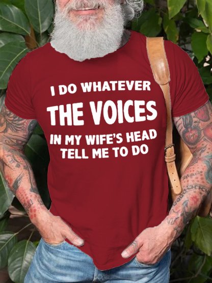 Men's Cotton I Do Whatever The Voices In My Wife’s Head Tell Me To Do Funny T-Shirt