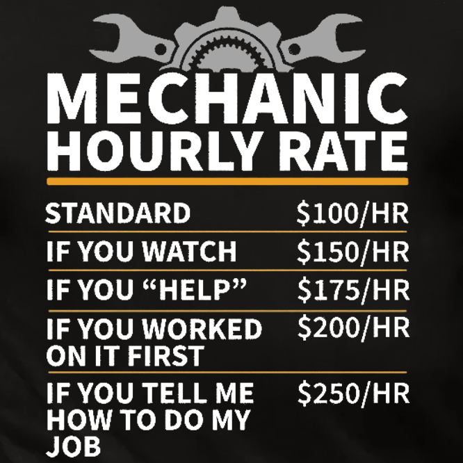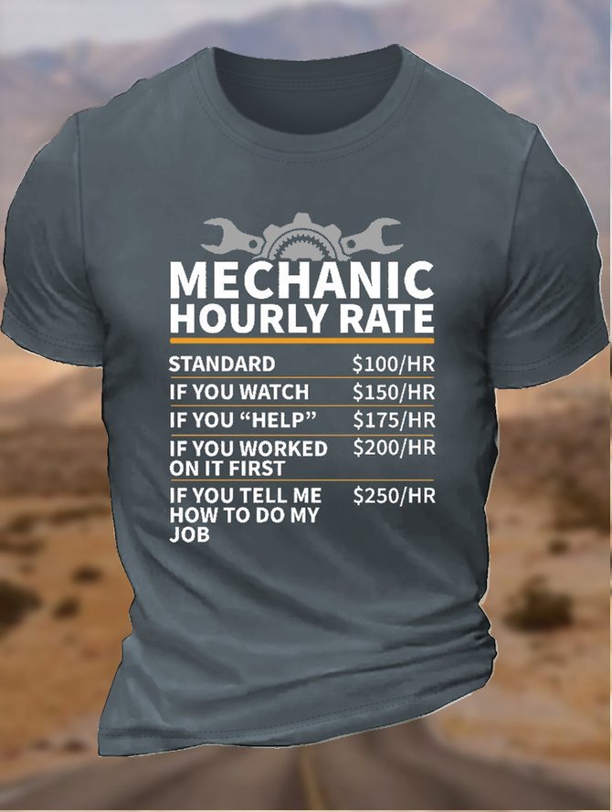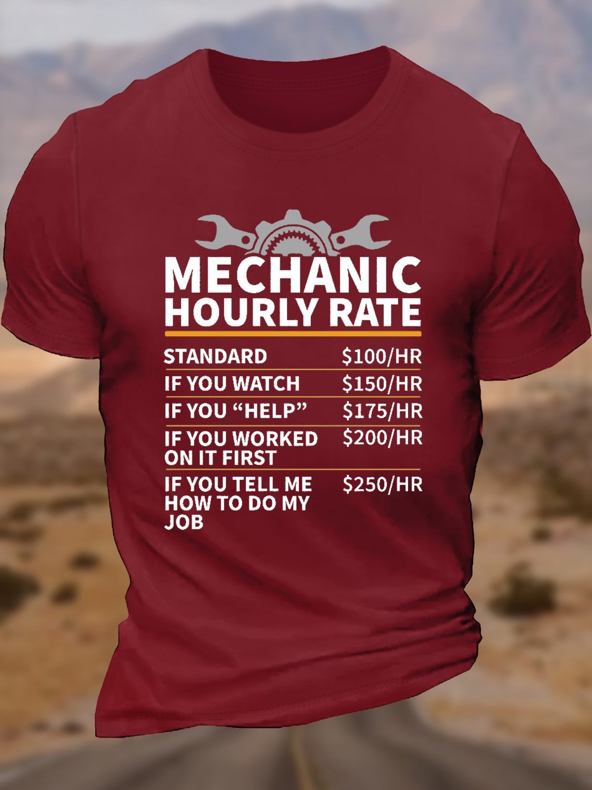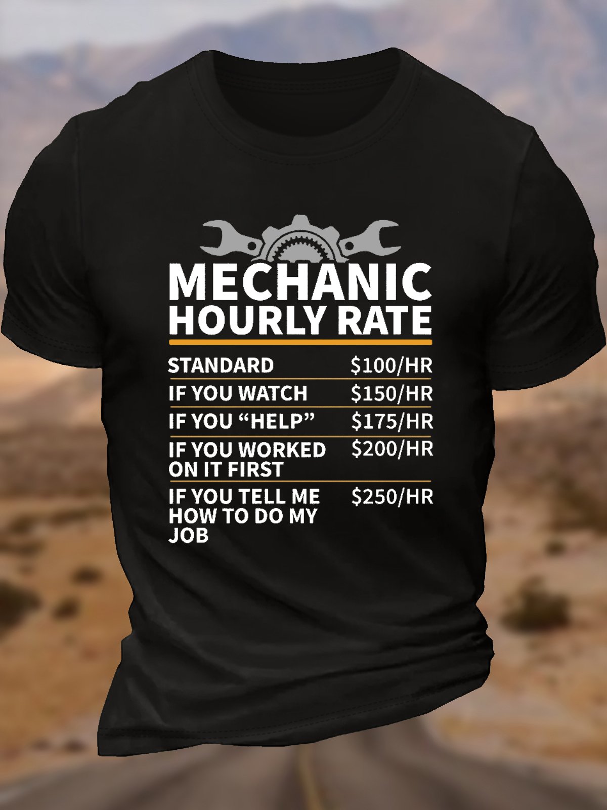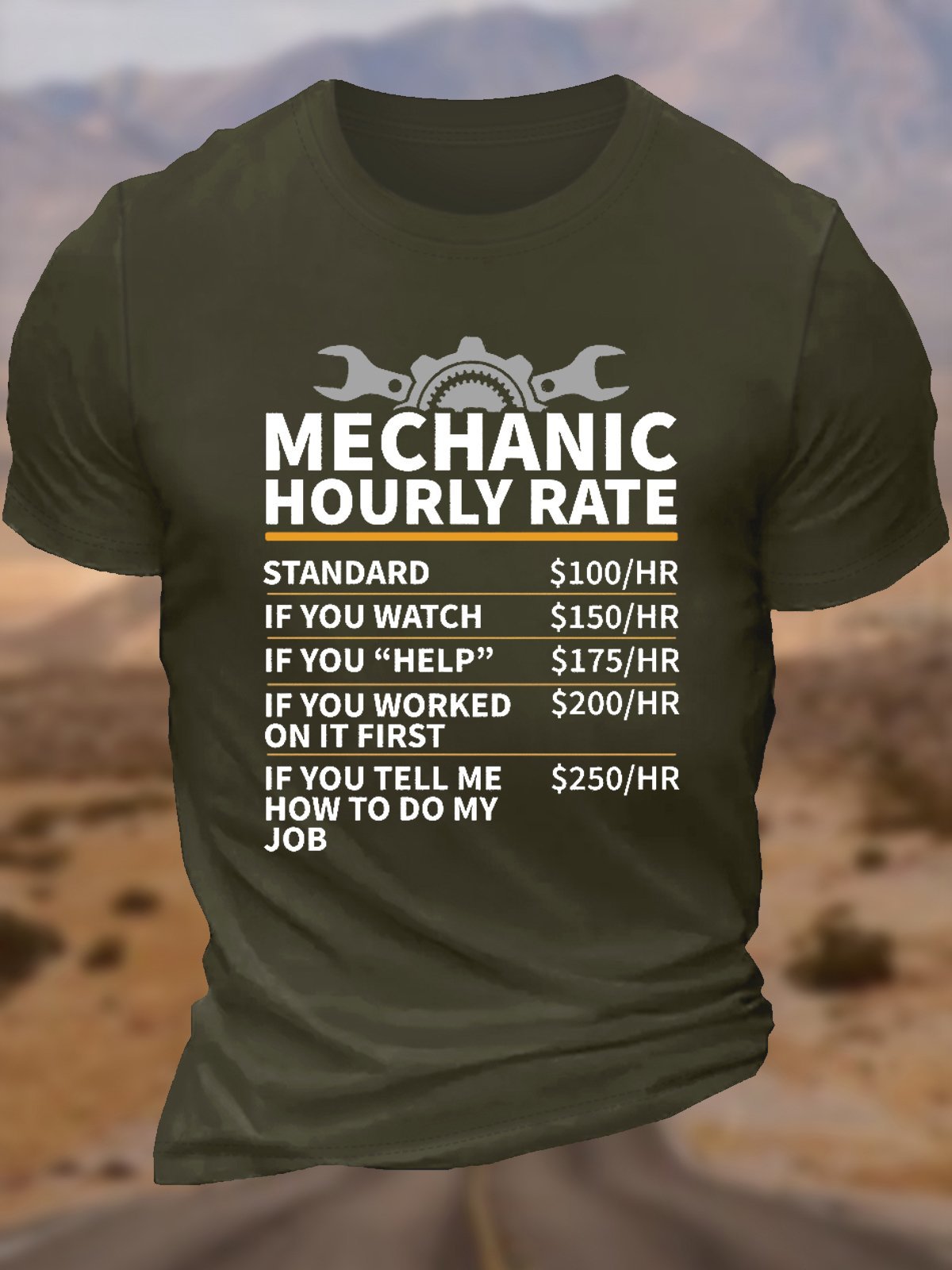 Men's Funny Mechanic Hourly Rate Cotton Casual Letters T-Shirt