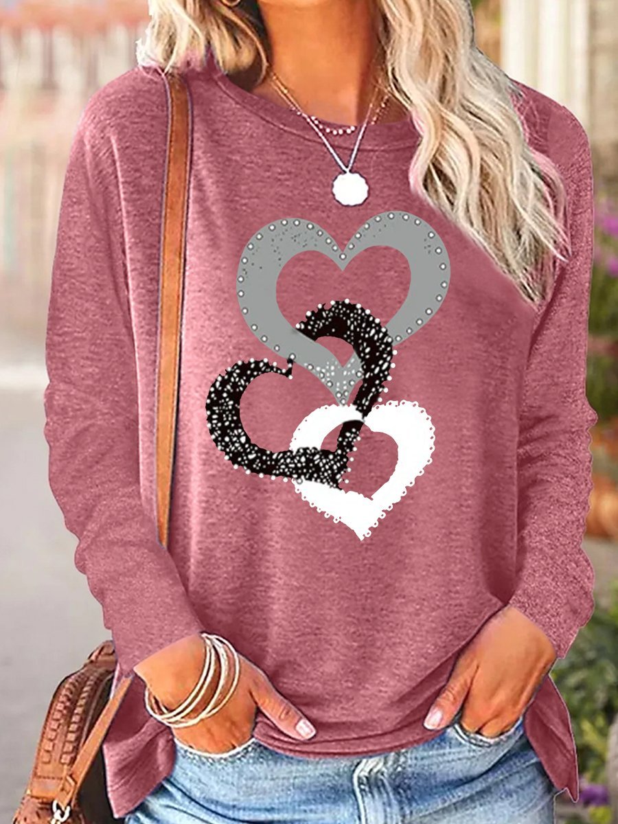 Women’s Regular Fit Simple Crew Neck Heart Long Sleeve Top