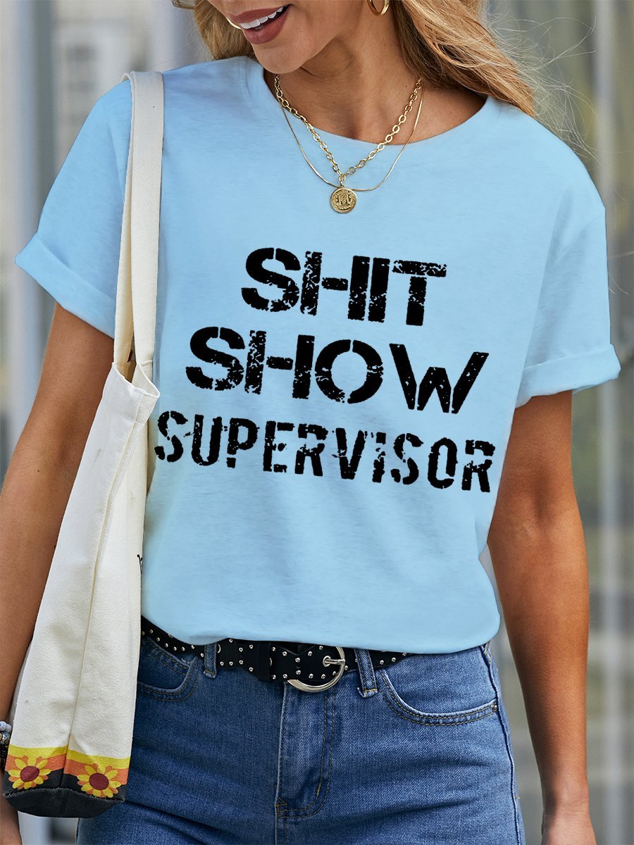 Women's Funny Word Shit Show Supervisor Simple Text Letters Cotton Loose T-Shirt