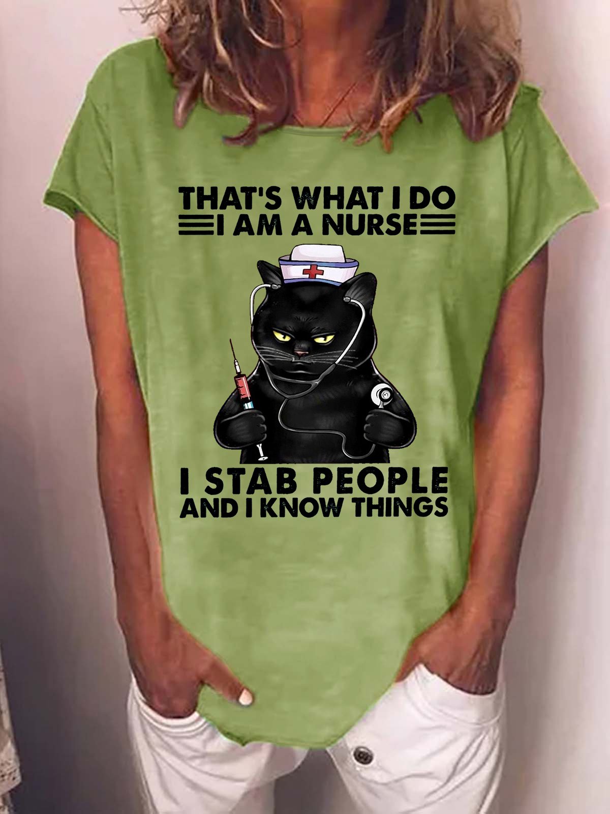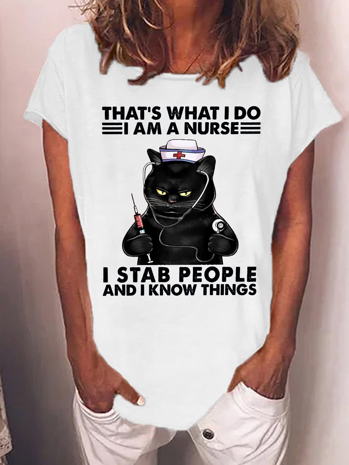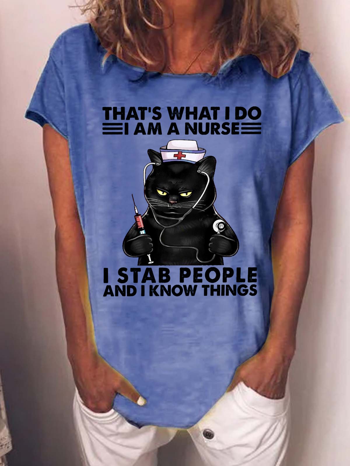 Women‘s Funny Word That's What I Do I Am A Nurse Cotton-Blend Casual Loose T-Shirt