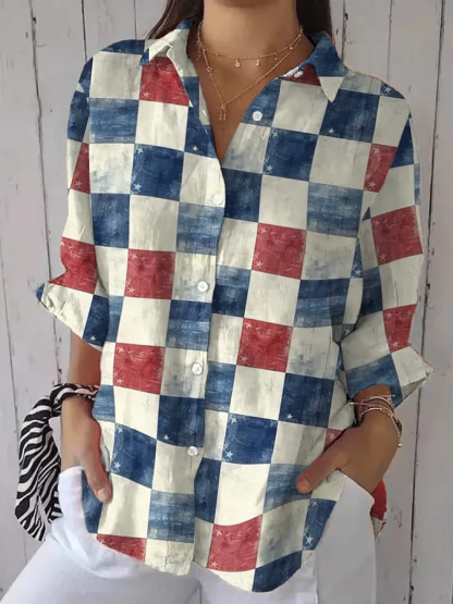 Women's Independence Day American Colors Plaid Celebration Print Shirt Top