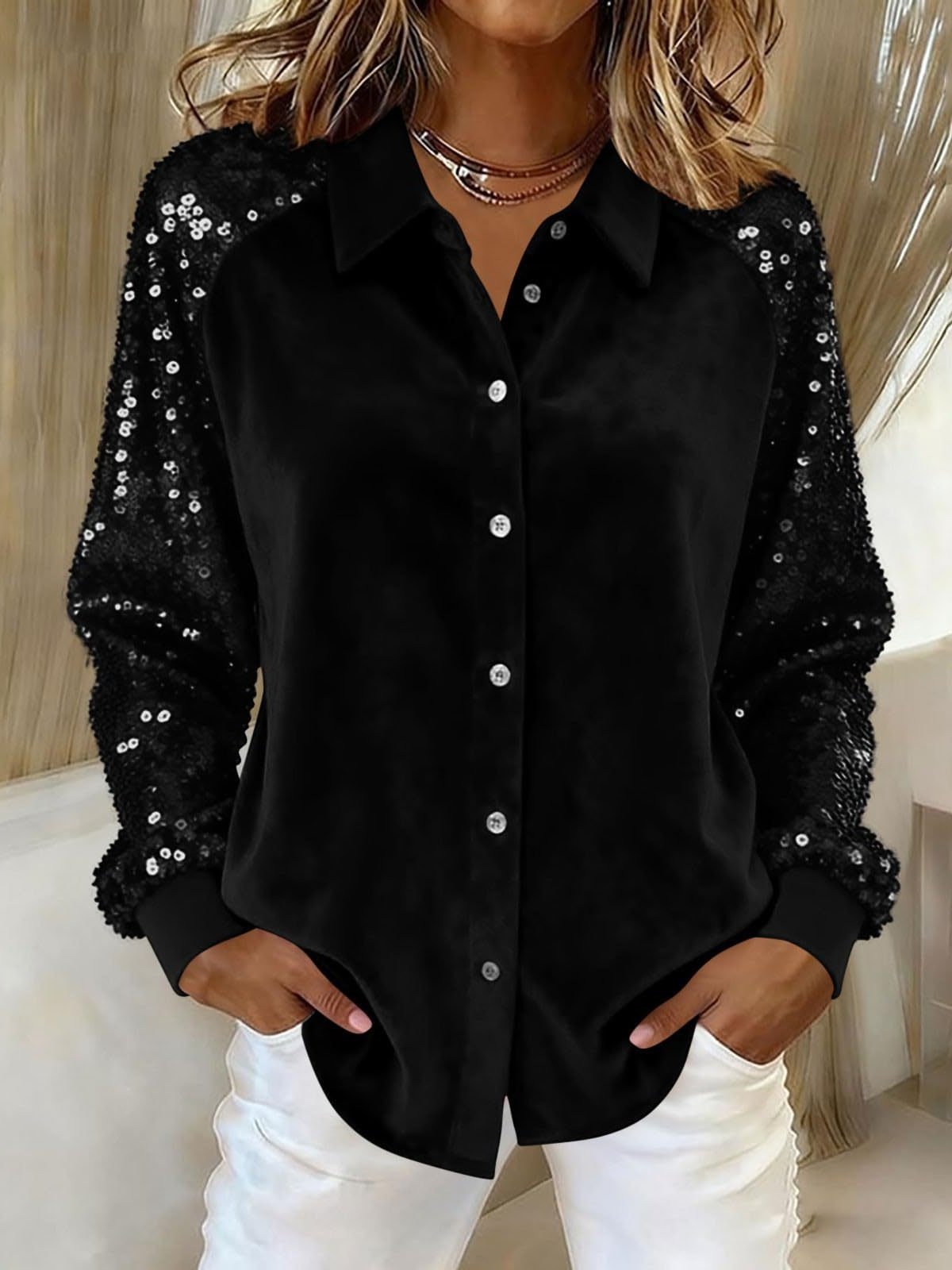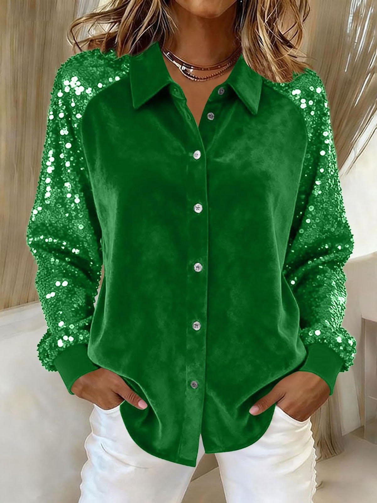 Women's Long Sleeve Shirt Spring/Fall Red Plain Split Joint Pleuche Shawl Collar Daily Going Out Casual Top