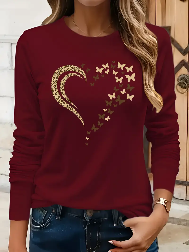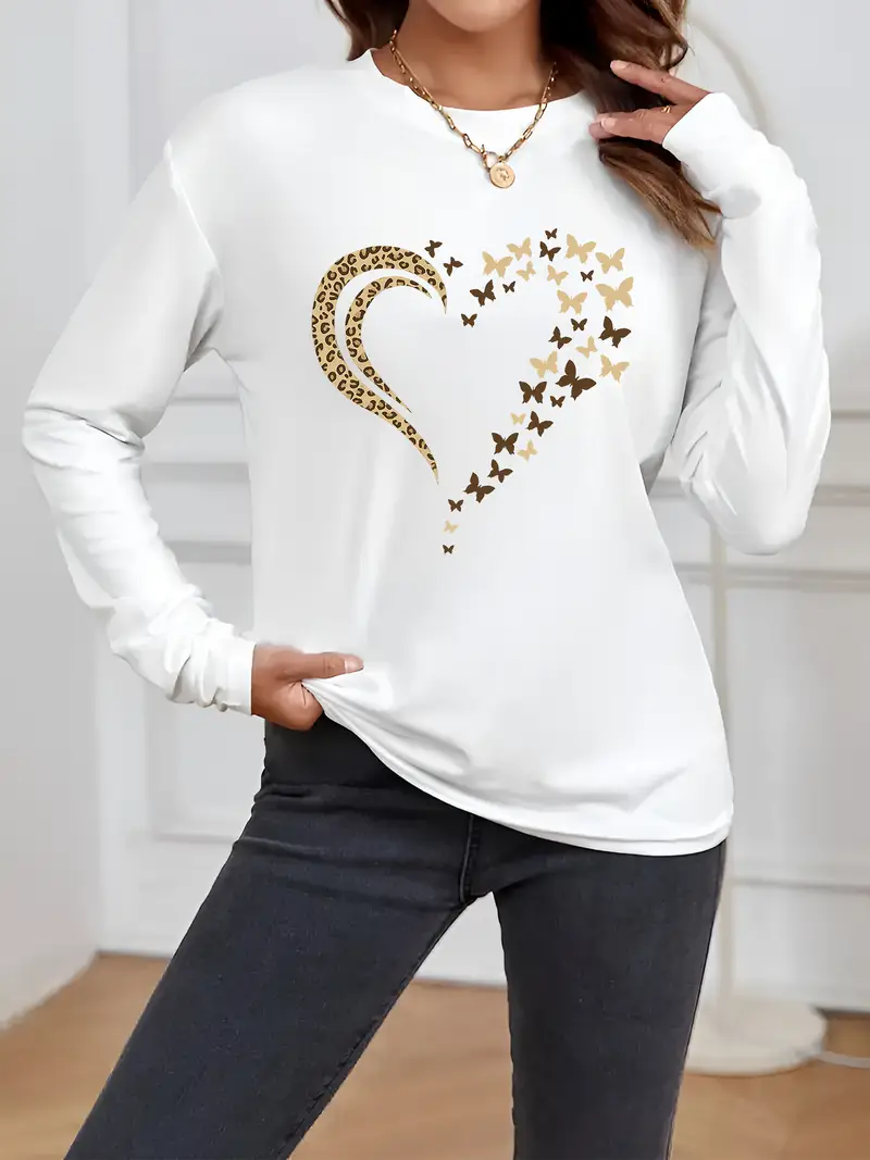 Women's Long Sleeve T-shirt Spring/Fall Black Leopard Printing Jersey Crew Neck Daily Going Out Casual Top