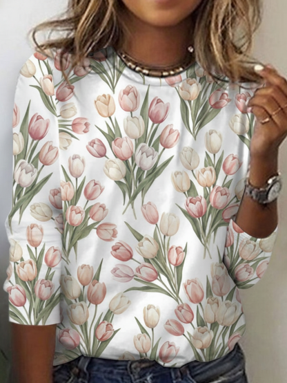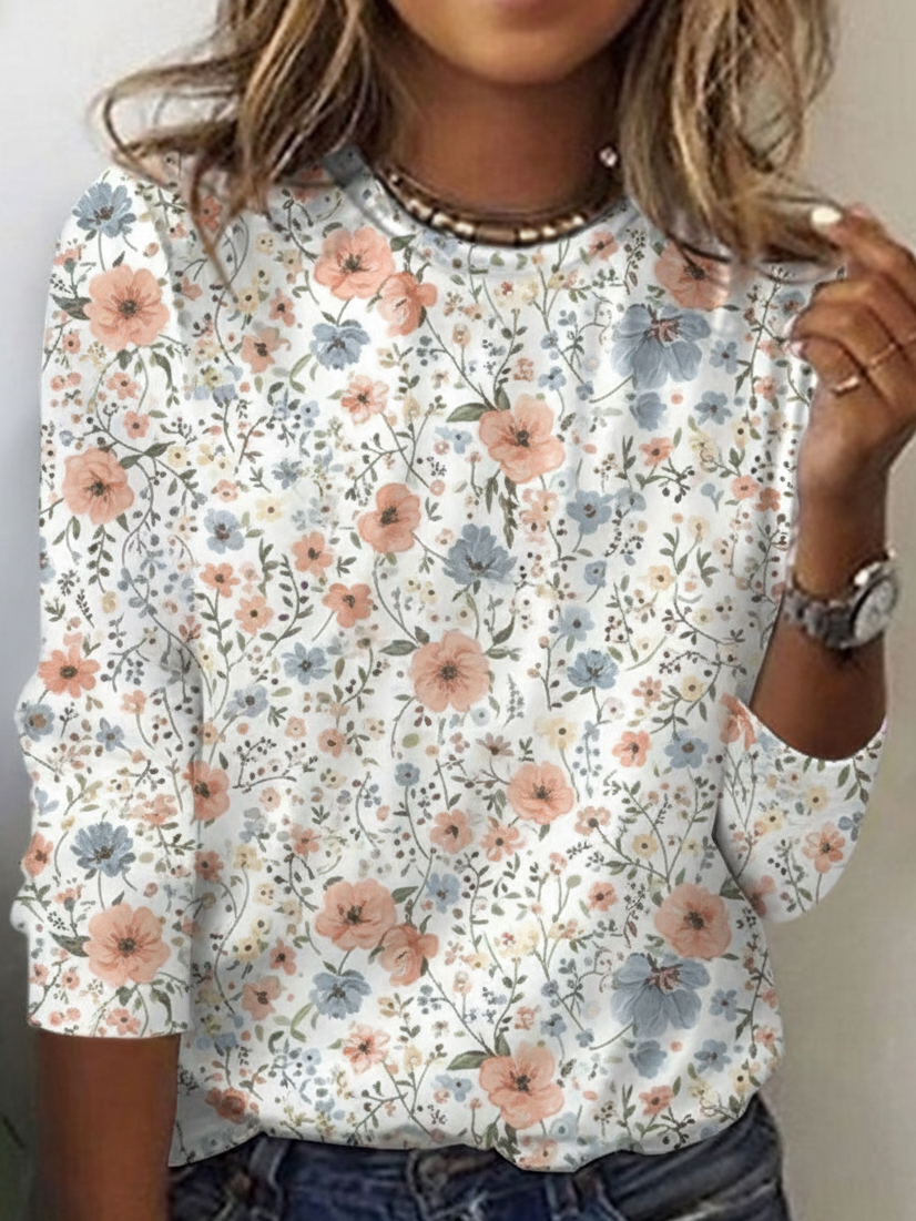 Cotton-Blend Simple Loose T-Shirt