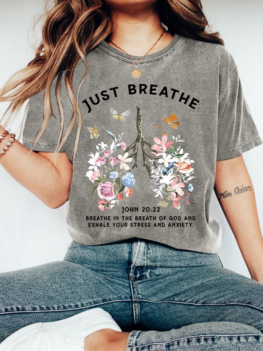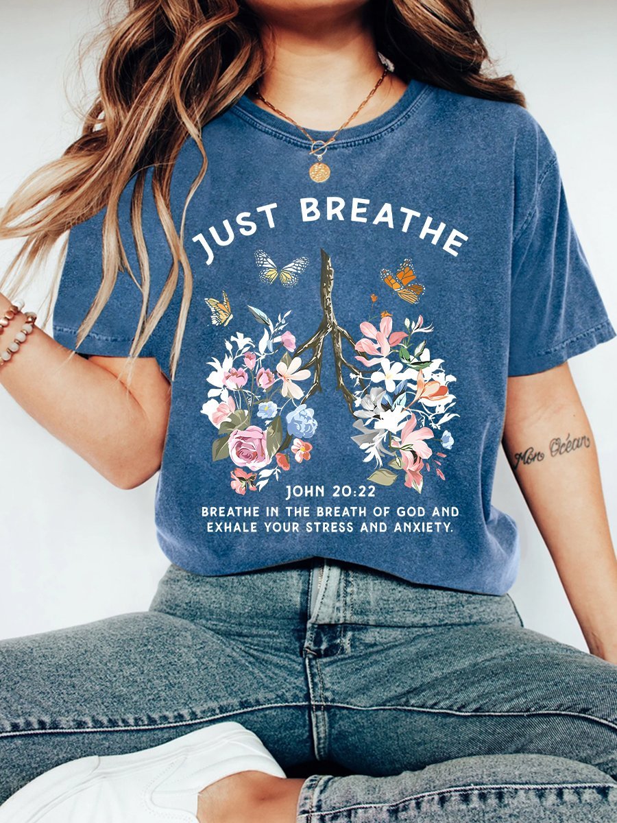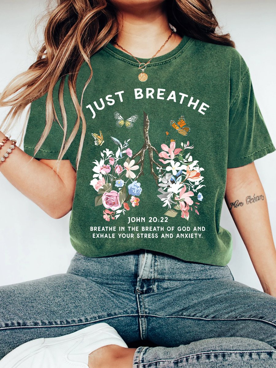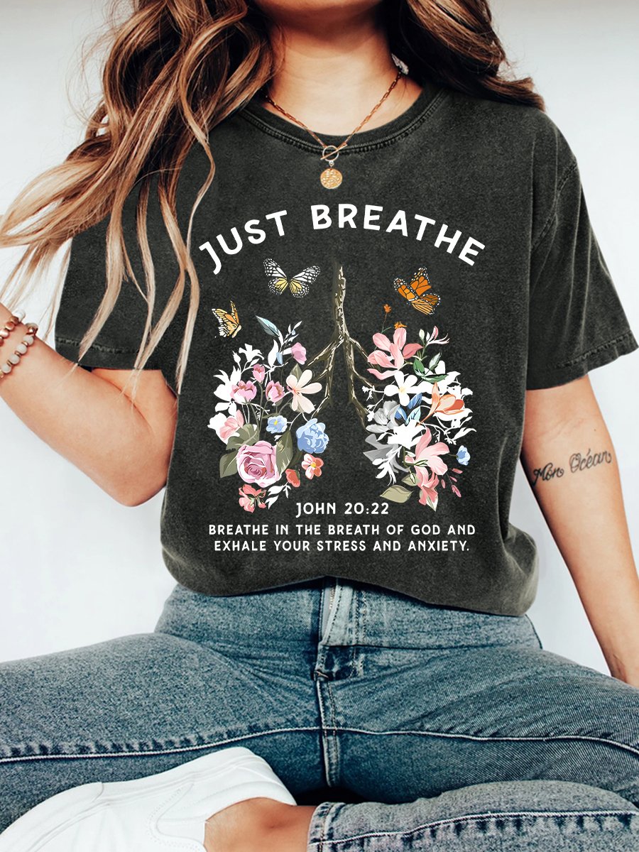 Just Breathe Boho Christian Vintage Distressed Shirt