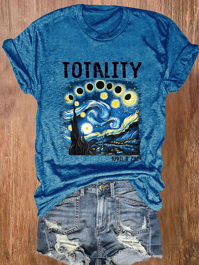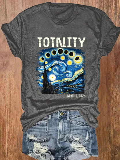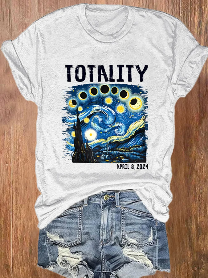 Retro Starry Night & Totality Solar Eclipse Of April 8, 2024 Print T-Shirt