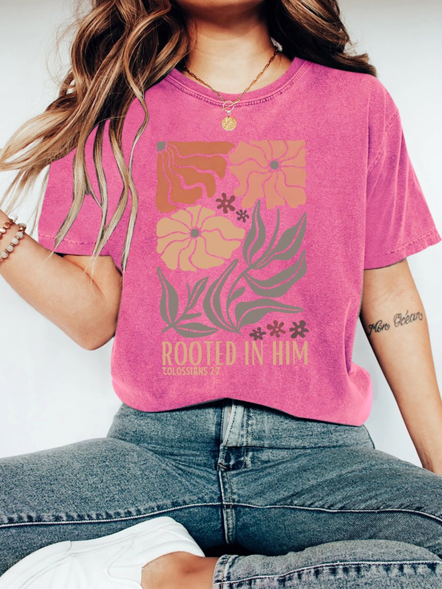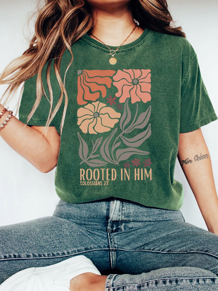 Rooted In Him Christian Vintage Distressed Shirt