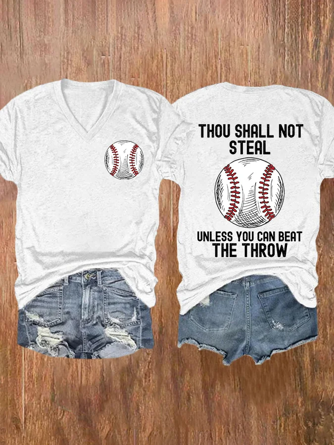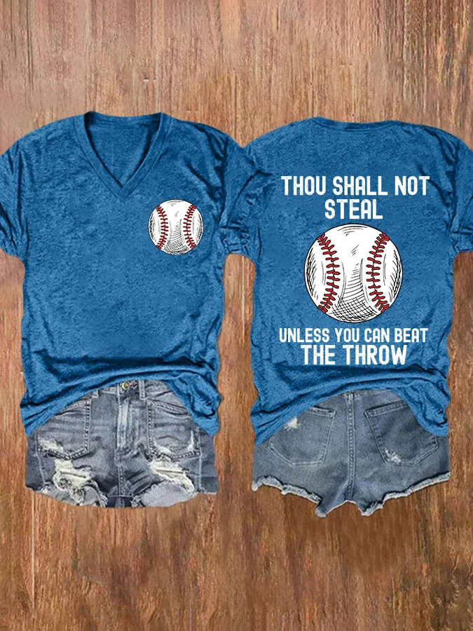 V-neck Retro Baseball Thou Shall Not Steal Unless You Can Beat The Throw Print T-Shirt