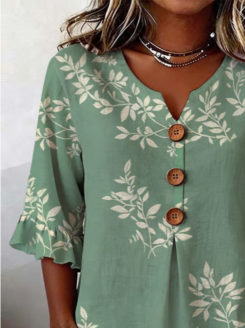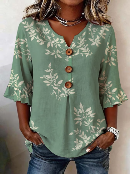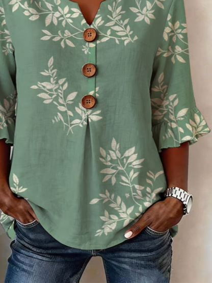 Women's Half Sleeve Blouse Summer Green Floral Printing V Neck Daily Going Out Vintage Top