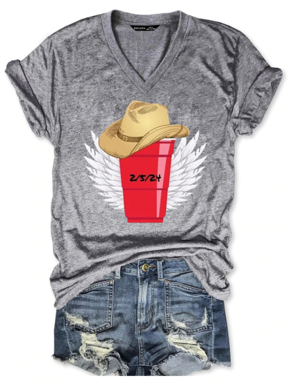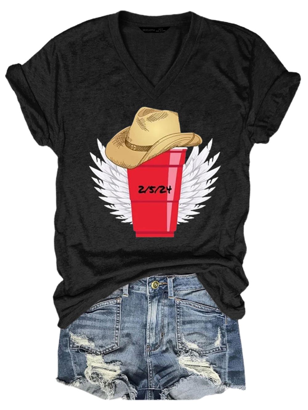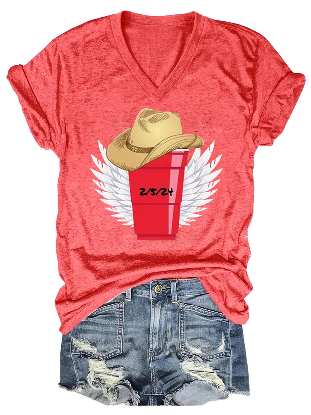 Women's Red Solo Cup Wings 2/5/24 Print Text Letters T-Shirt
