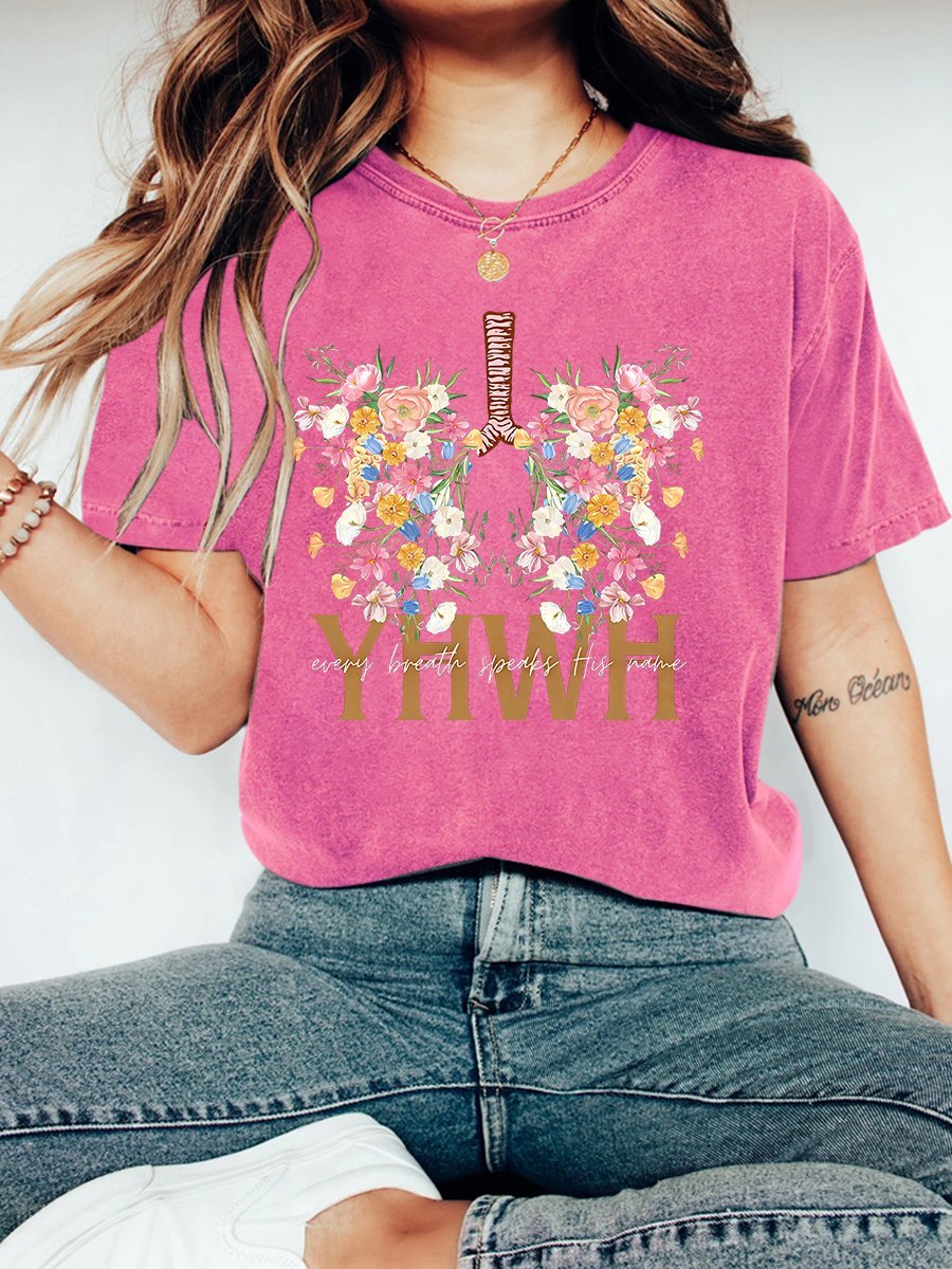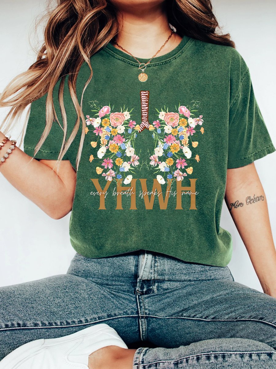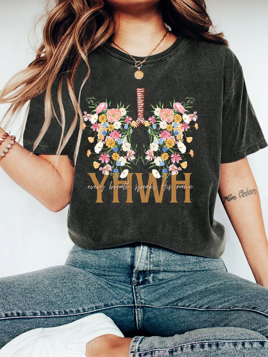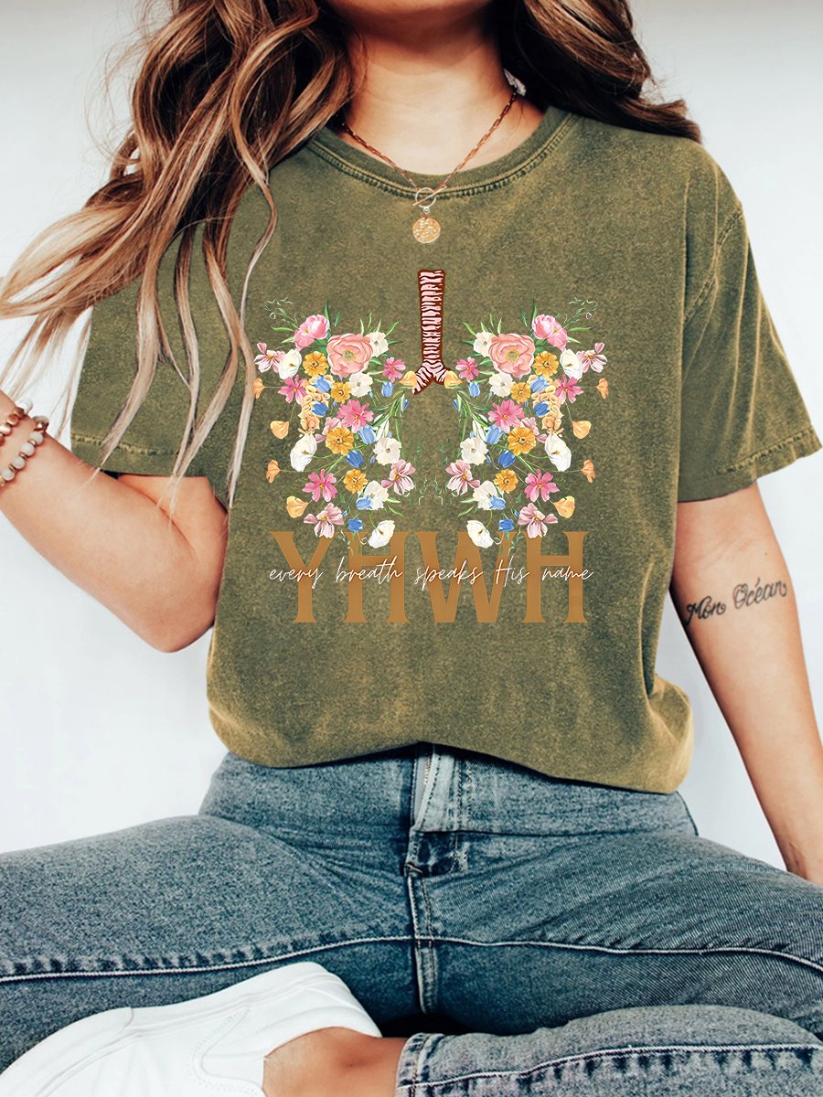 YHWH Floral Christian Washed T-Shirt Vintage Distressed Shirt