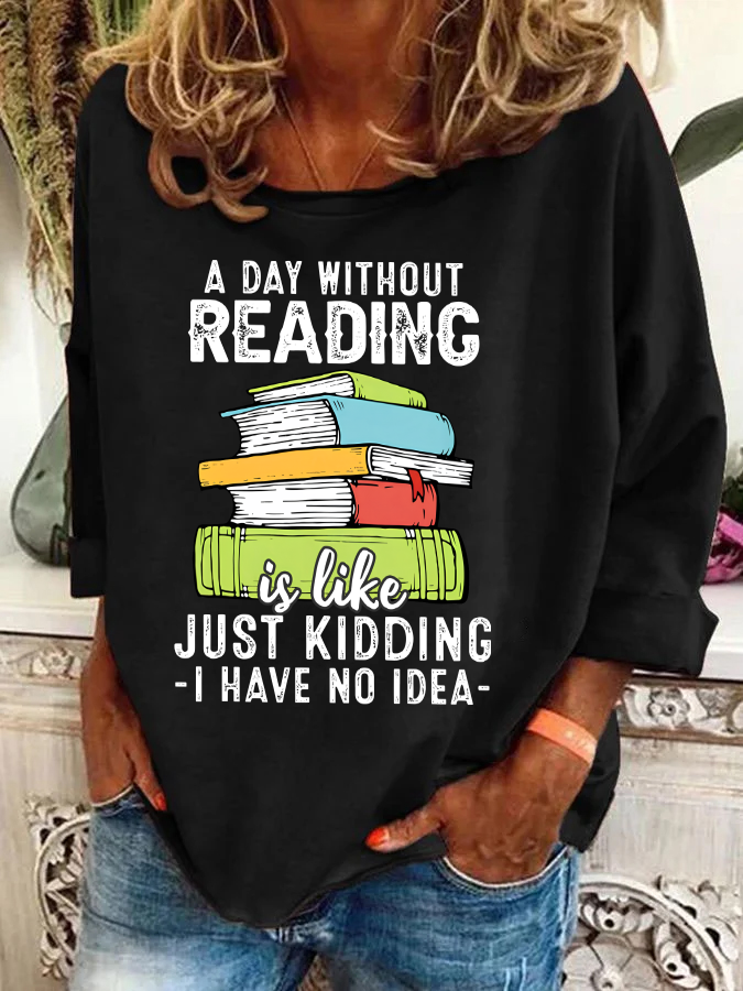 A Day Without Reading Funny Reader Bookworm Books Lover Read Books Casual Sweatshirt