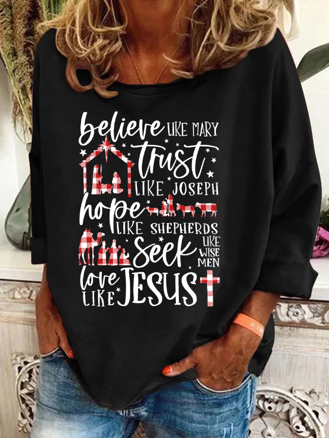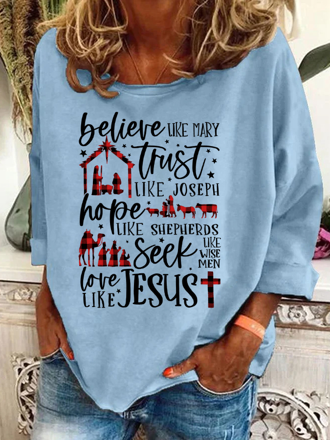 Believe Uke Mary Trust Like Joseph Hope Like Shepherds Seek Love Casual Sweatshirt
