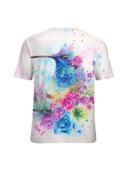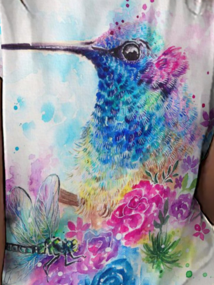 Women‘s Simple Crew Neck Color Block Cute Bird T-Shirt