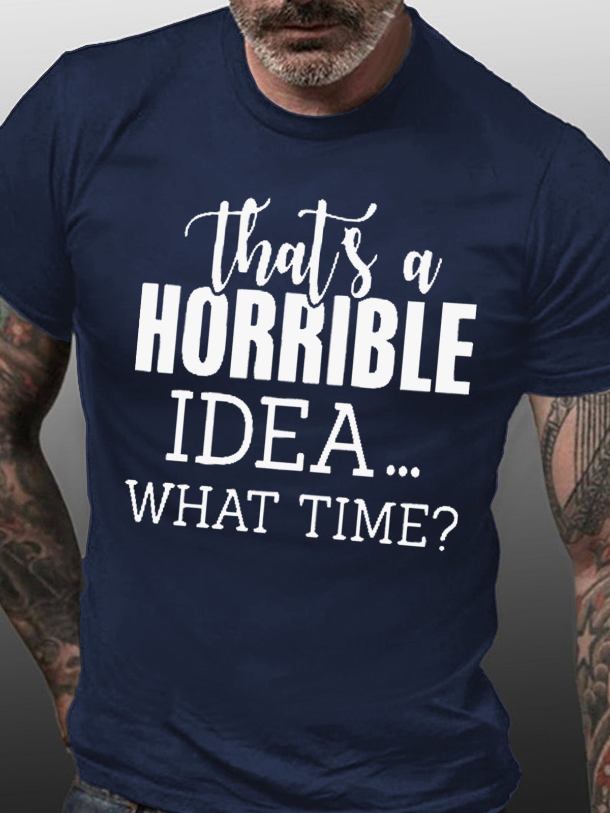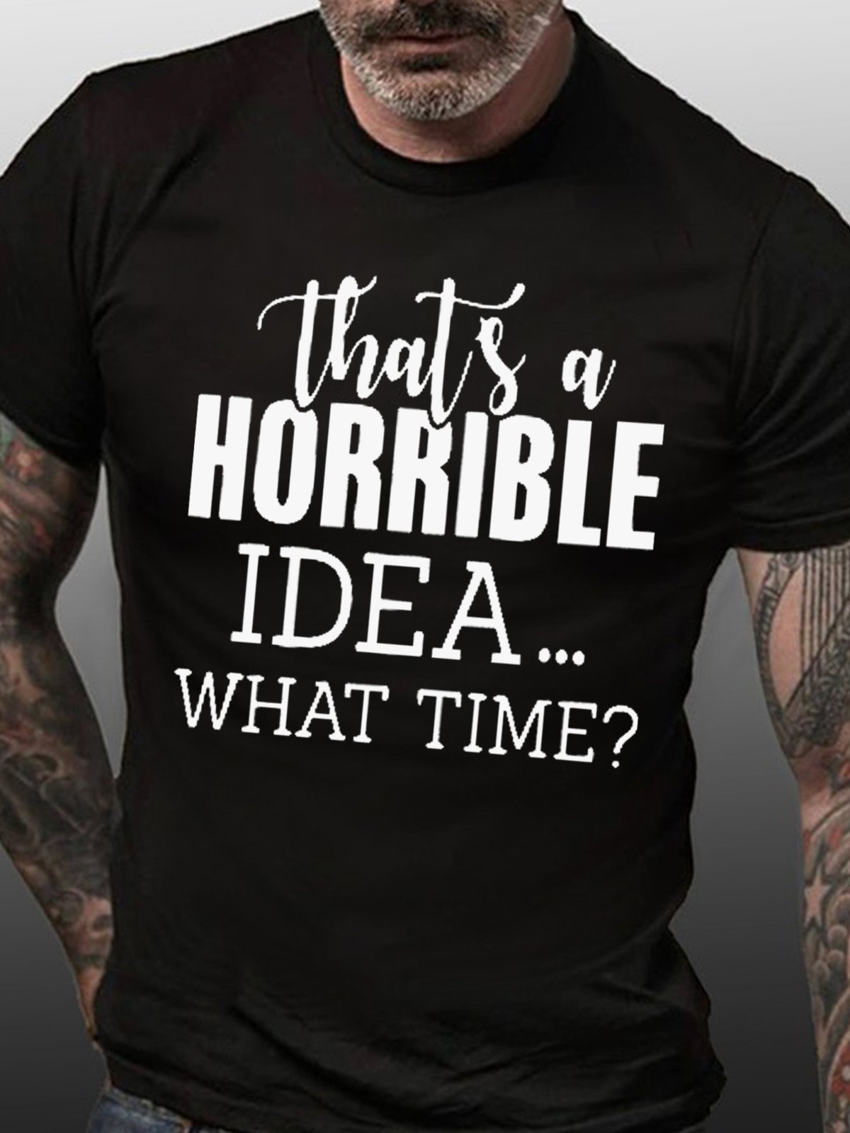 Men That's A Horrible Ideas Text Print Loose Crew Neck T-Shirt