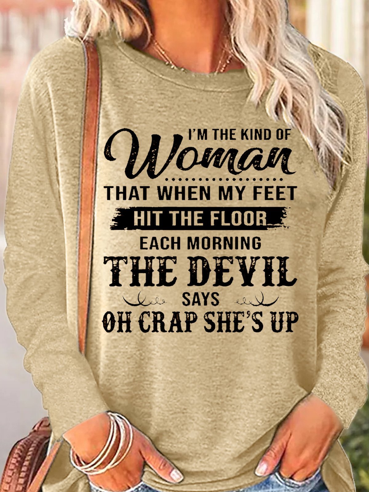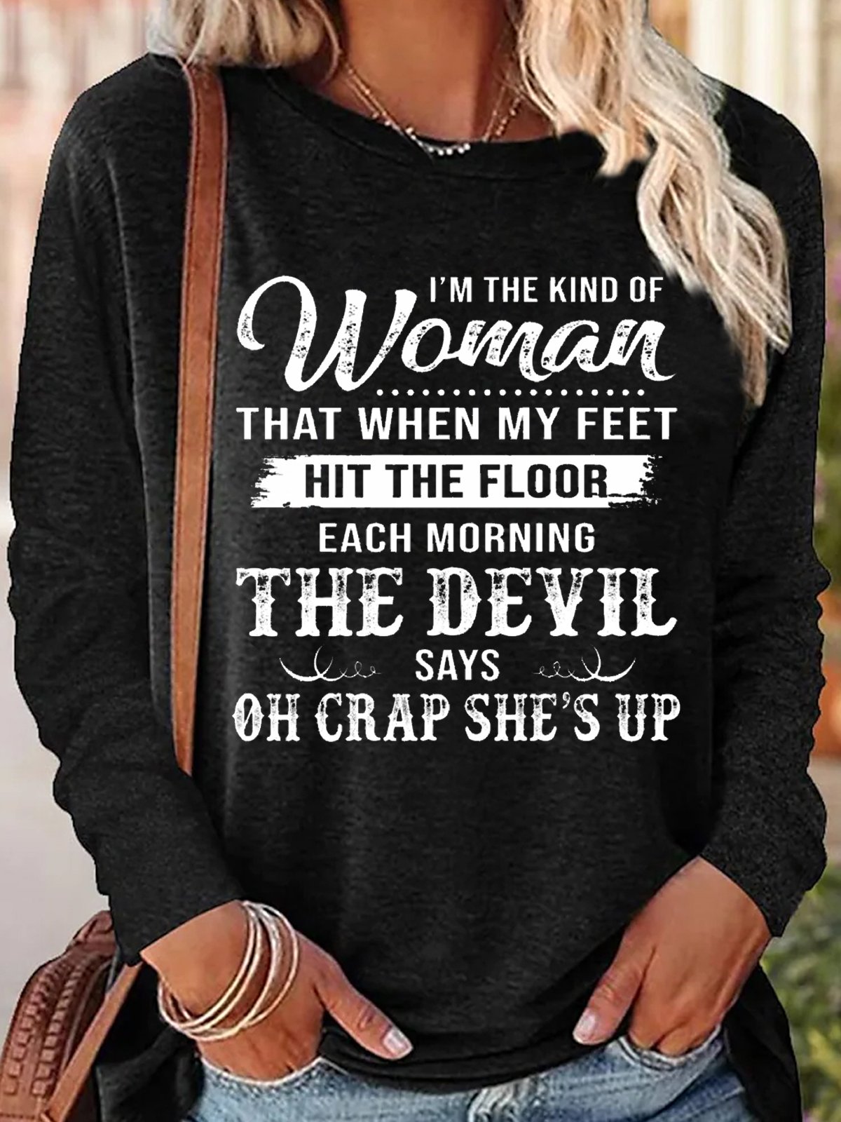 Women's I'm The Kind Of Woman That When My Feet Hit The Floor Each Morning The Devil Says Long Sleeve Top