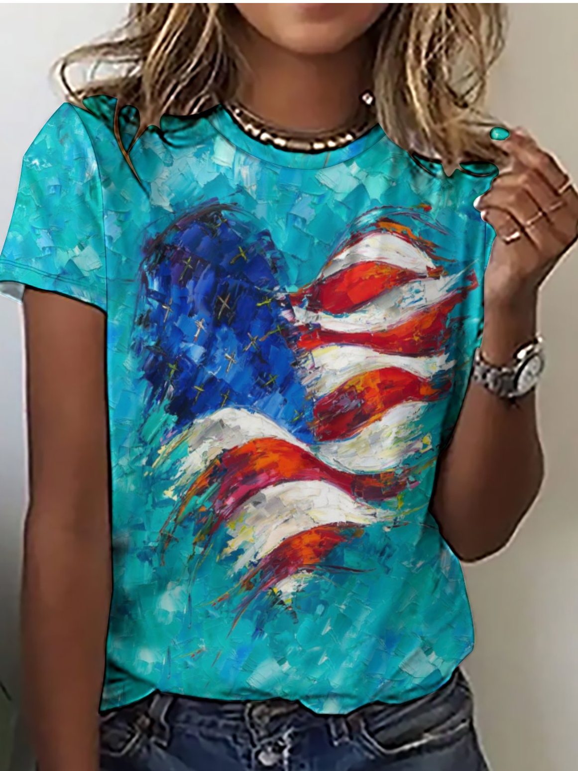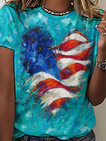 Women's Heart of America Flag Print Casual Regular Fit T-Shirt