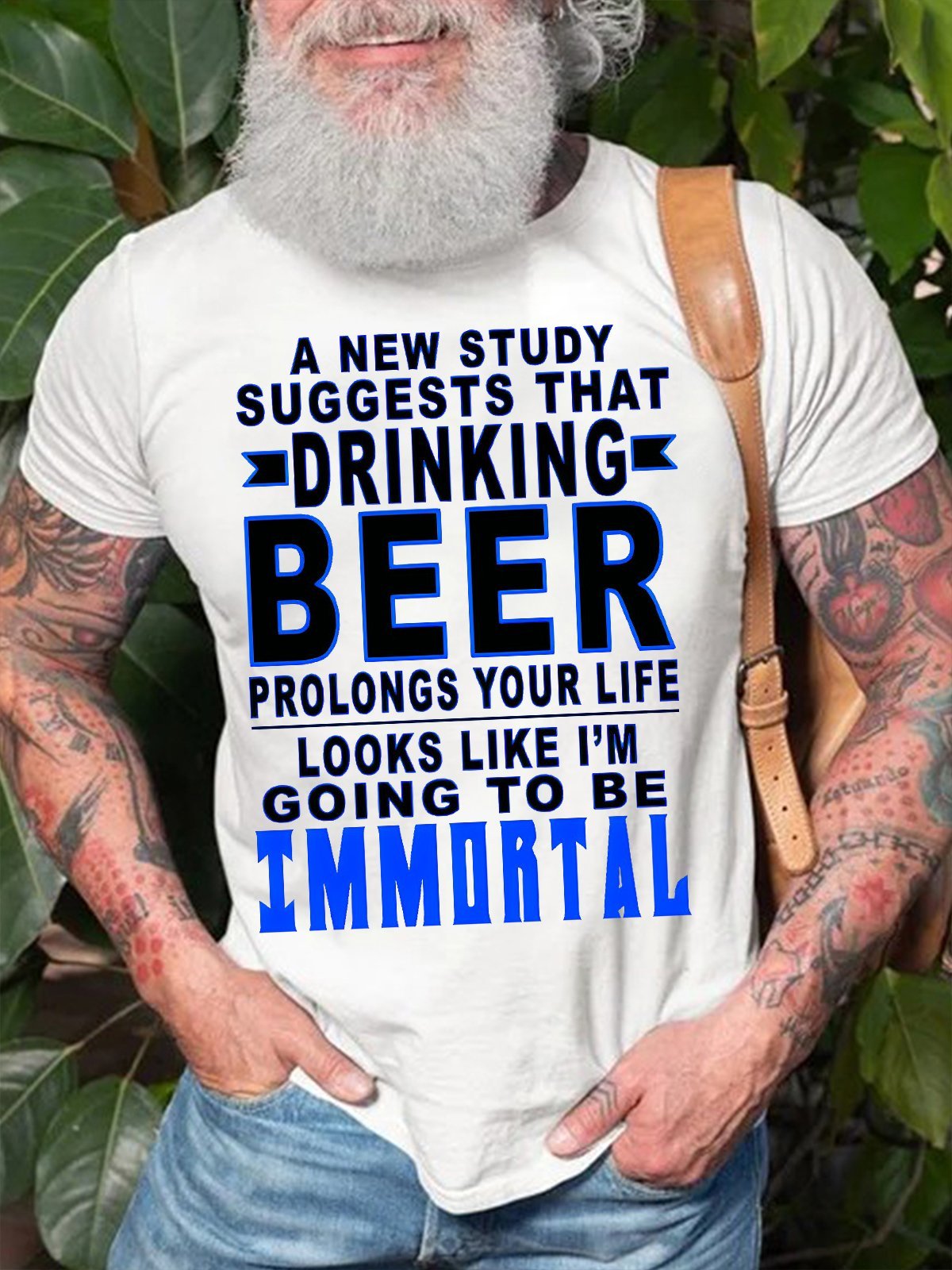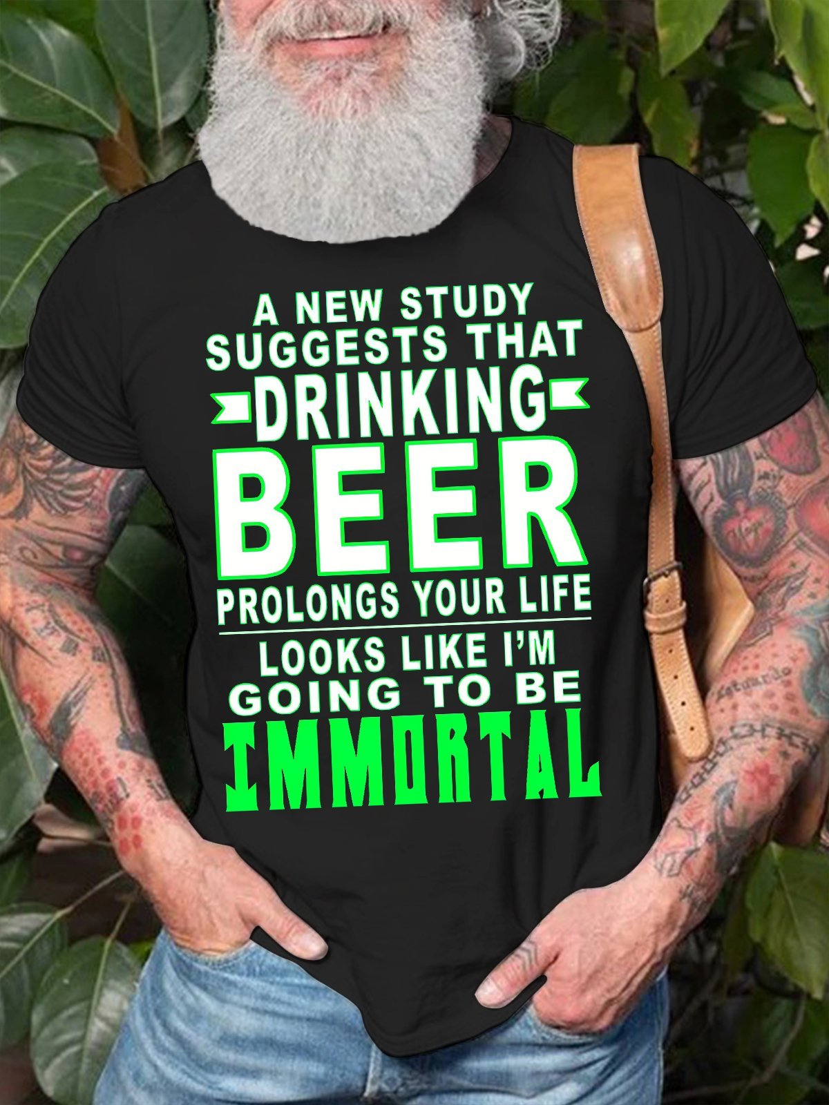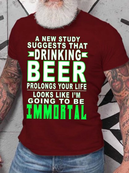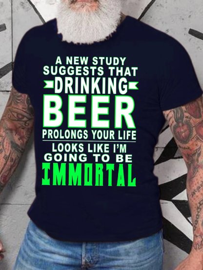 Men's Drinking Beer Going To Be Immortal Funny Casual Text Letters Crew Neck Cotton T-shirt