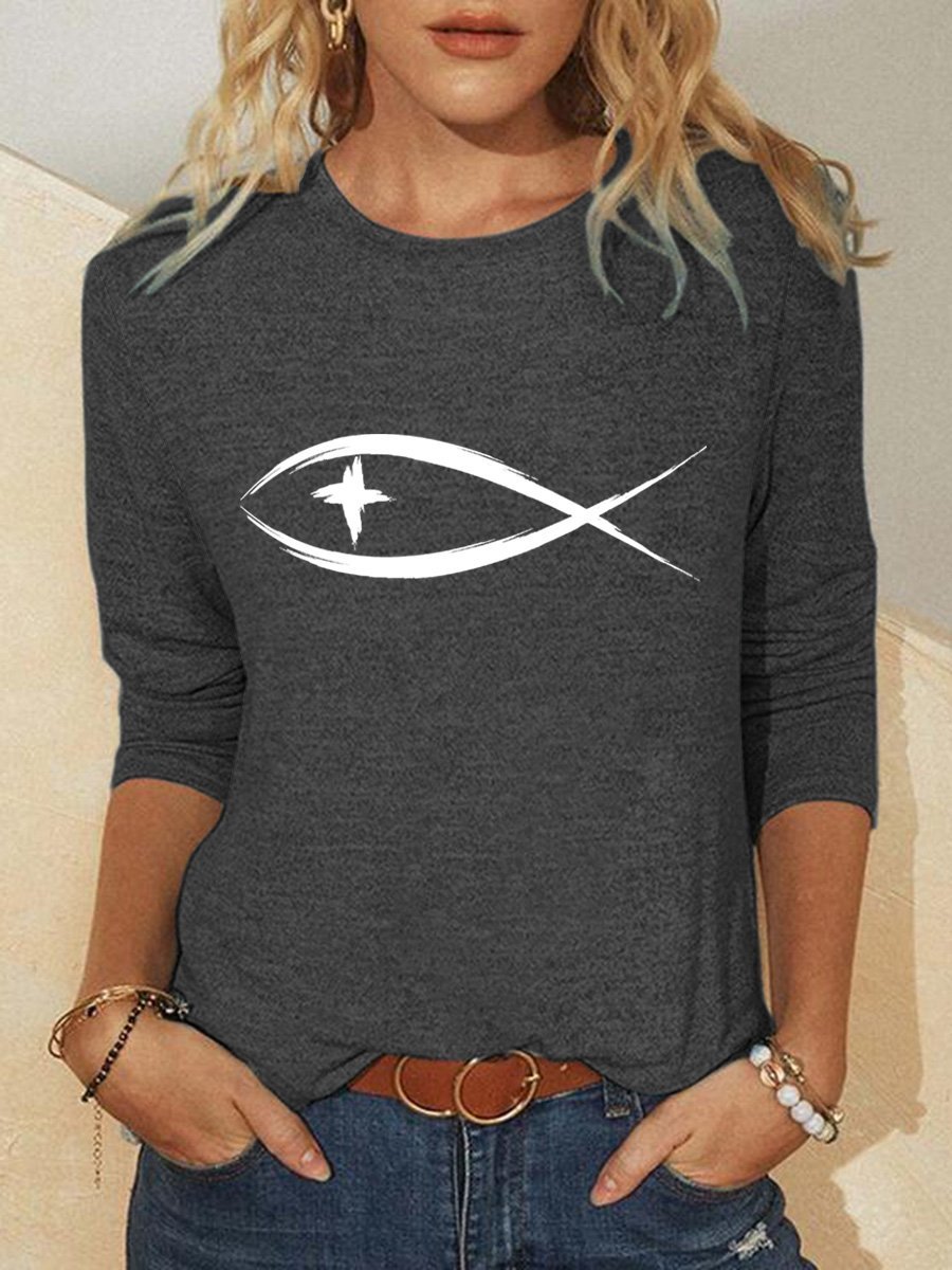 Christian Fish Symbol Women's Long Sleeve T-Shirt