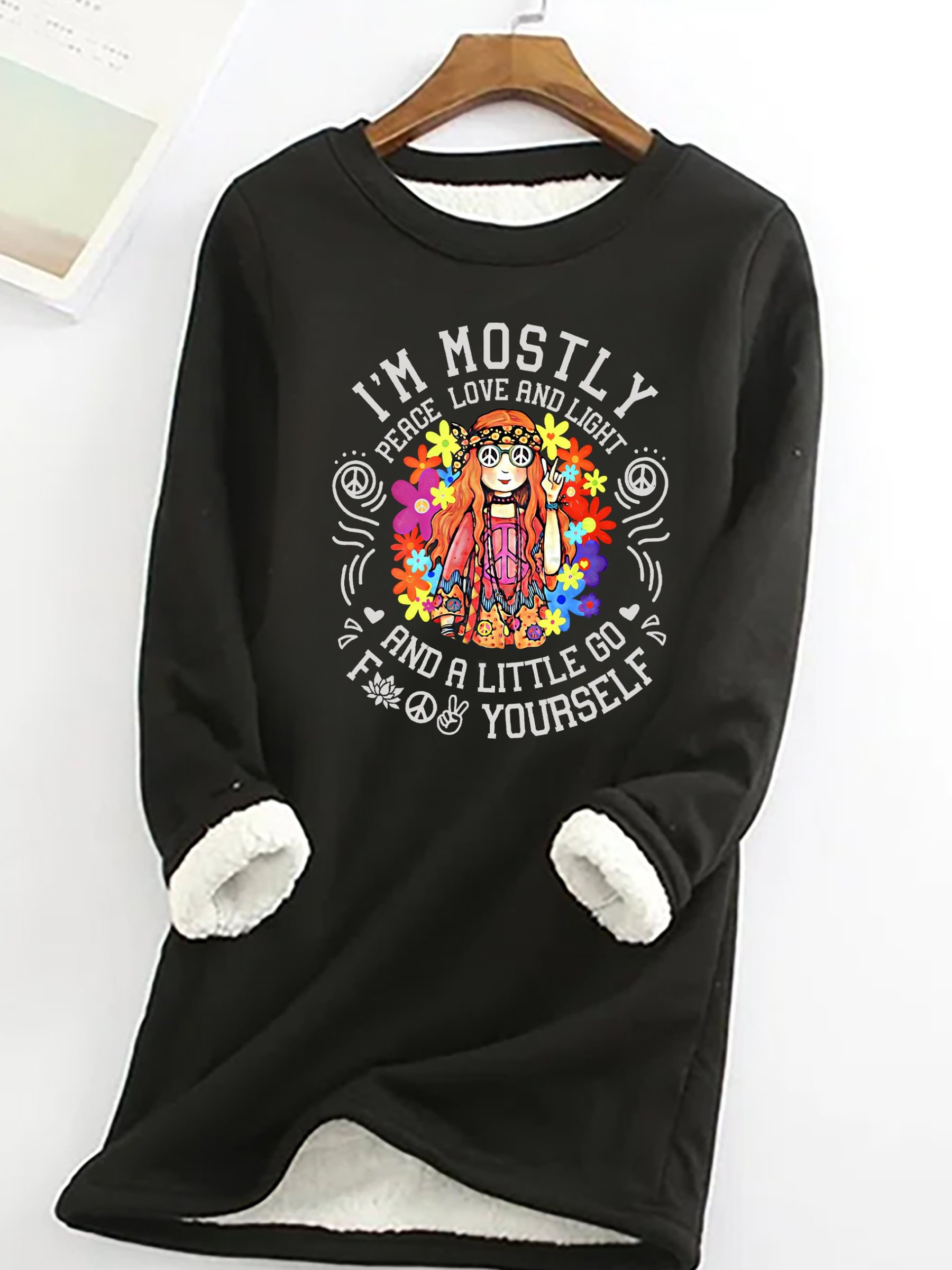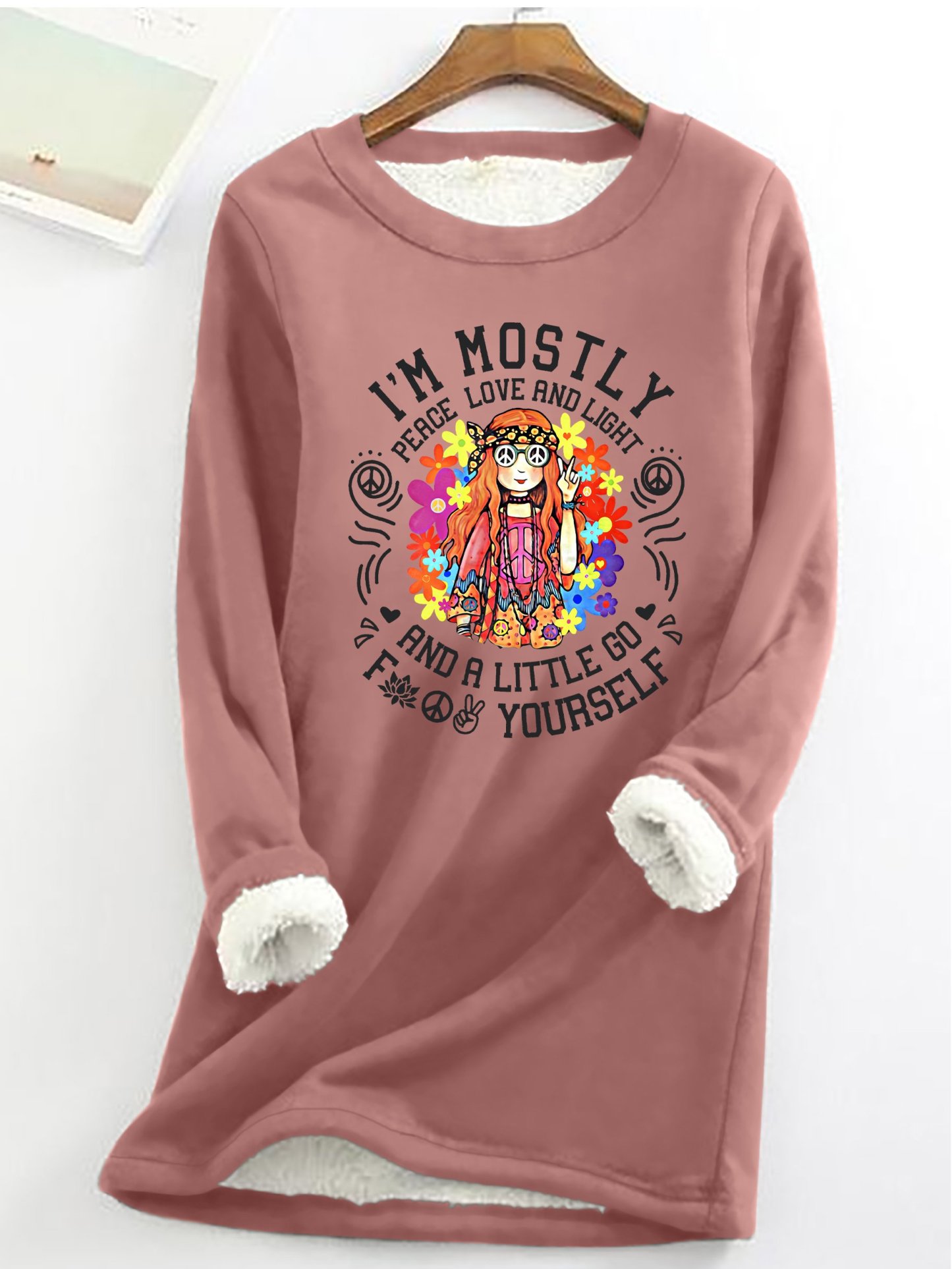 Peace Love And Light Printed Hipp Casual Fluff Fleece Fabric Sweatshirt