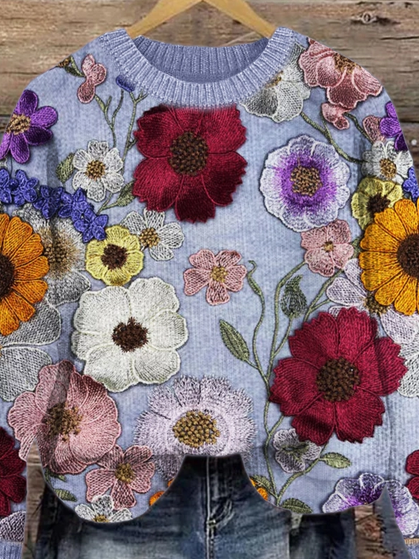 Simple Knitted Crew Neck 3D Printing Sweater