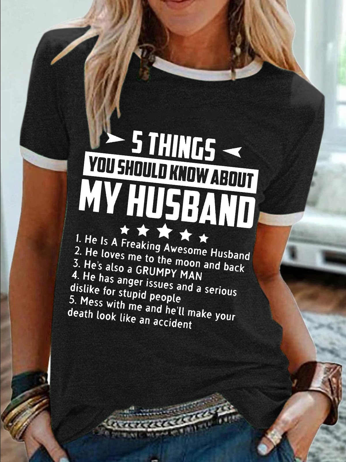 Women’s 5 Things You Should Know About My Husband Cotton-Blend Casual Crew Neck T-Shirt