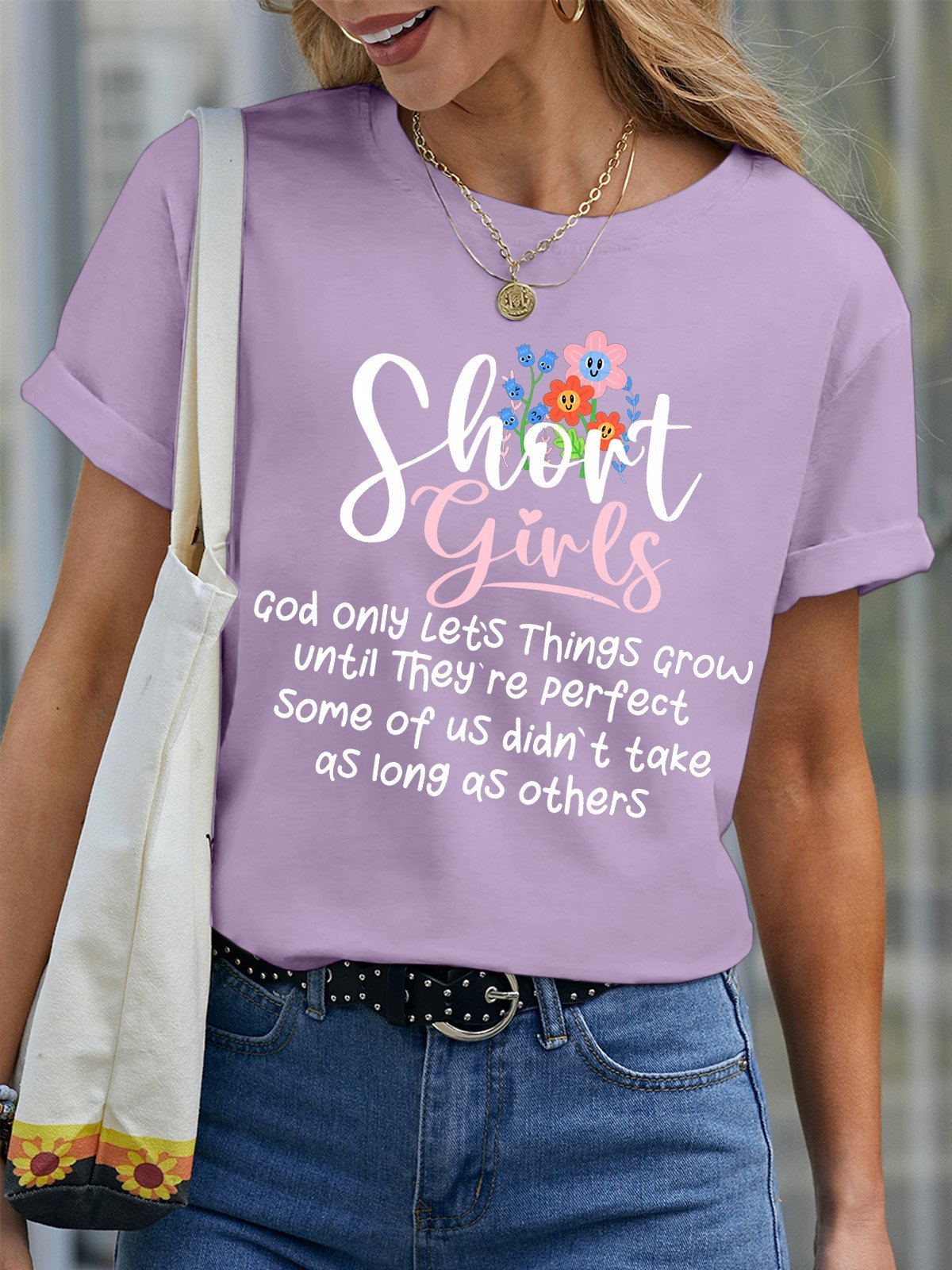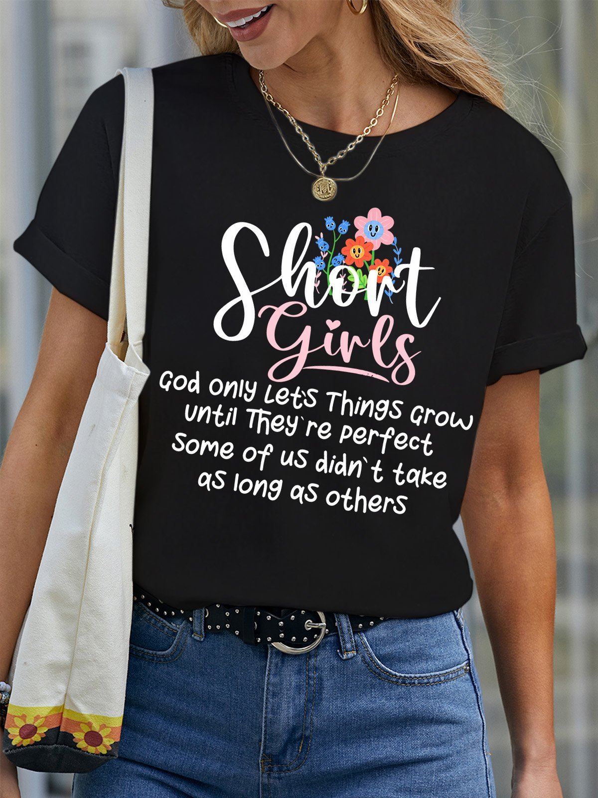 Women’s Short Girls God Only Let’s Things Grow Until They’re Perfect Casual Crew Neck T-Shirt