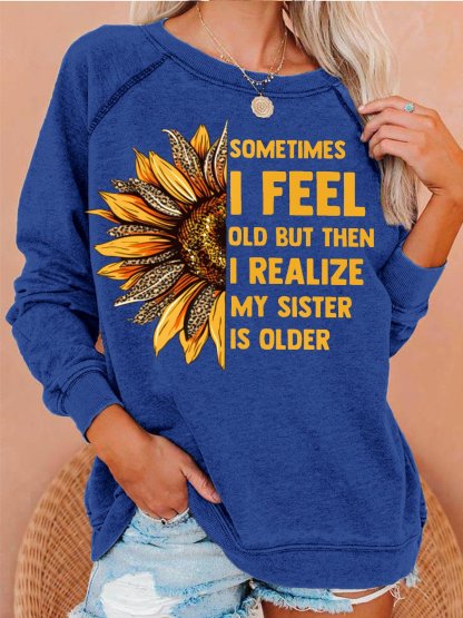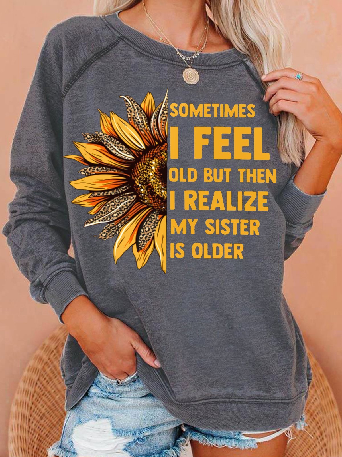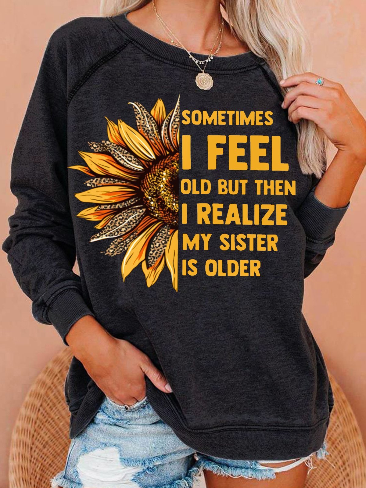 Womens Sometimes I Feel Old My Sister Is Older SunflowerCrew Neck Sweatshirt
