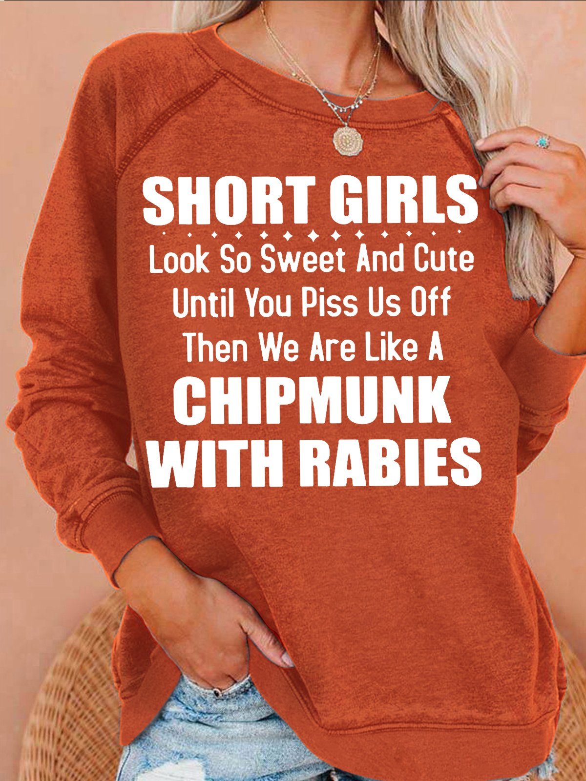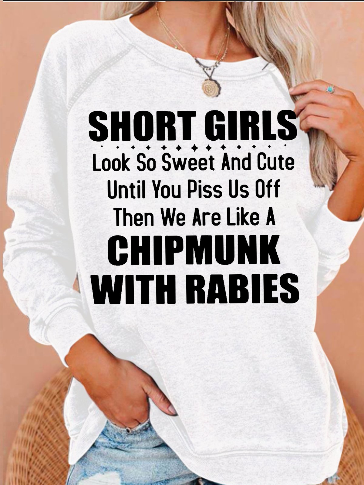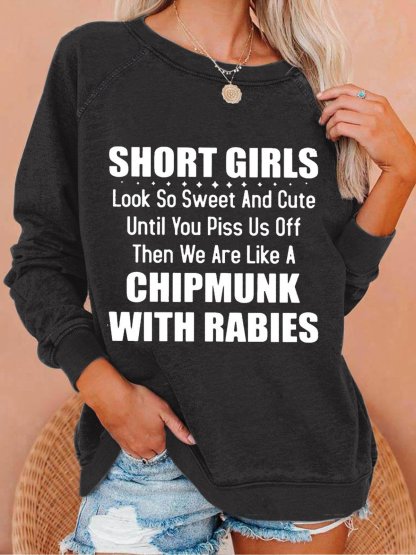 Womens Funny Letters Short Girls Look So Sweet And Cute Crew Neck Sweatshirt