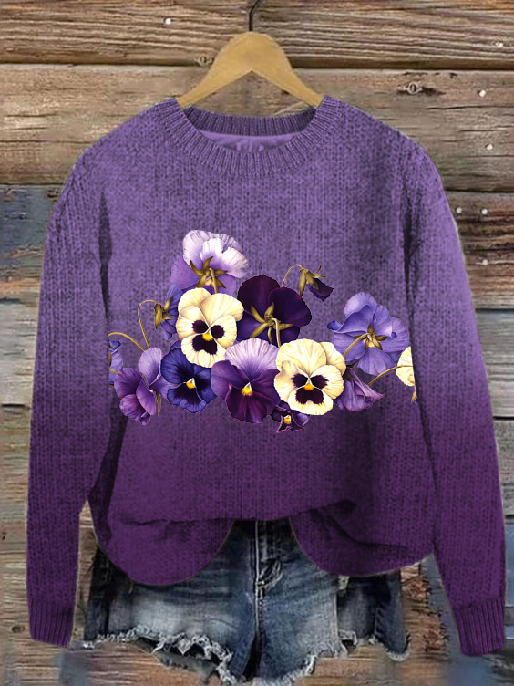 Women's Alzheimer's Purple Floral Print Crew Neck Loose Sweater