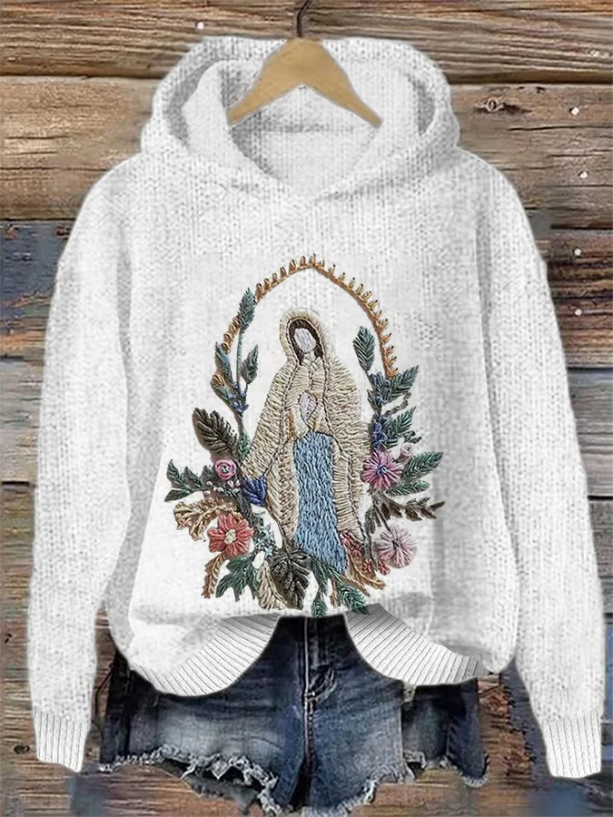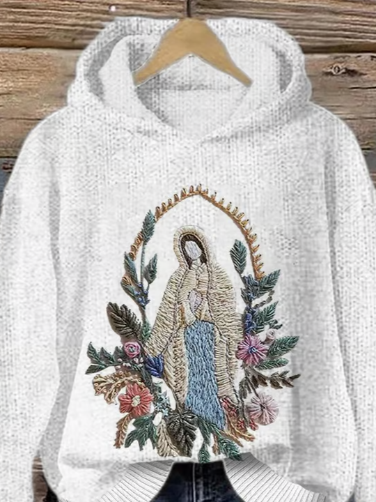 Women's Christian Virgin Mary Floral Knitted Hoodie