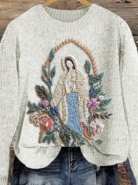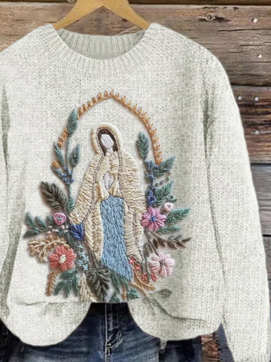 Women's Christian Virgin Mary Floral Knitted Sweatshirt