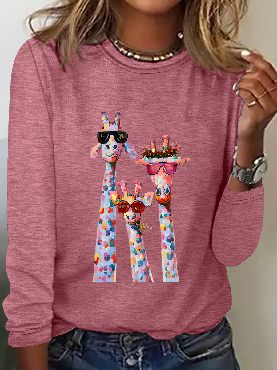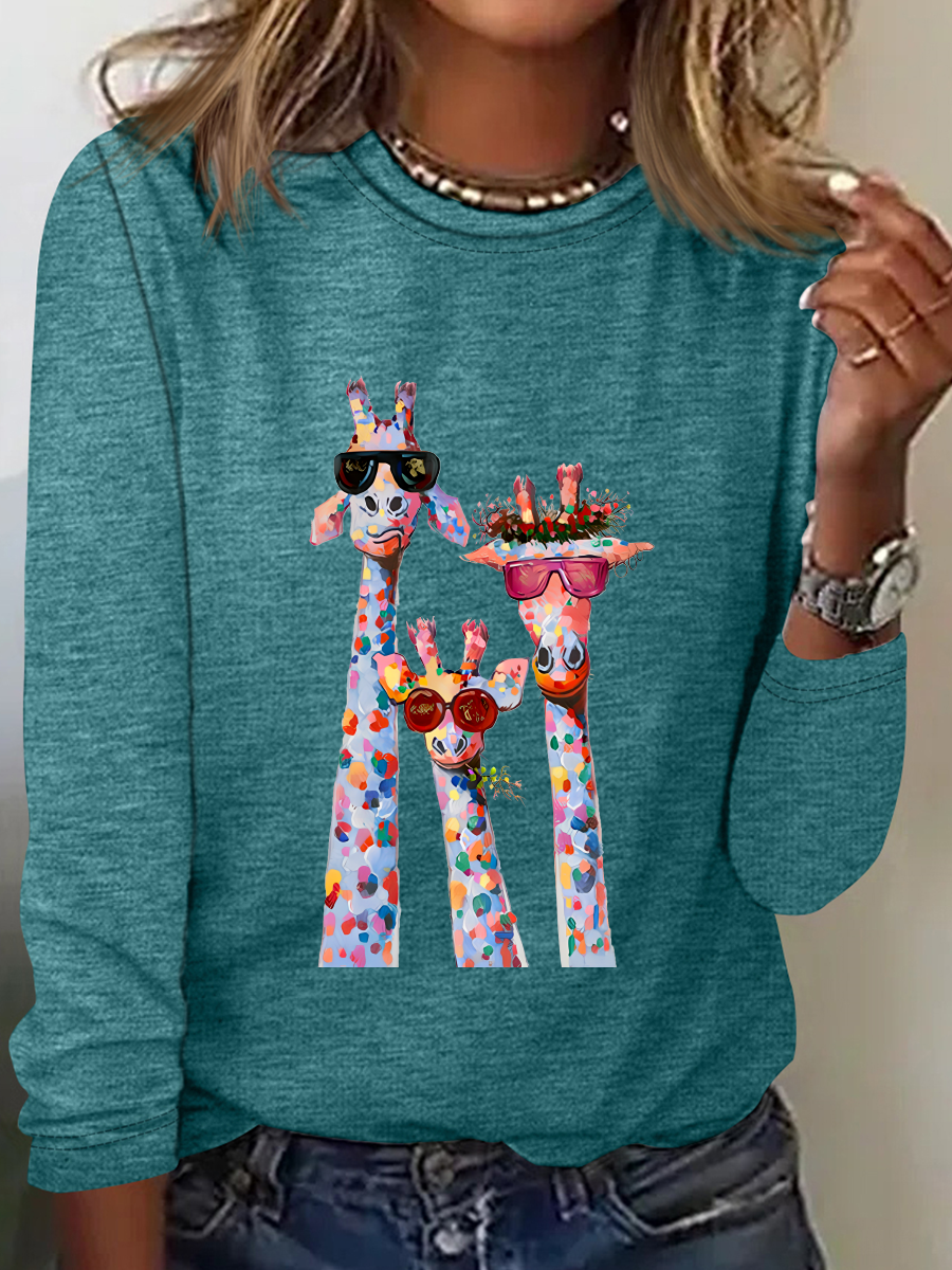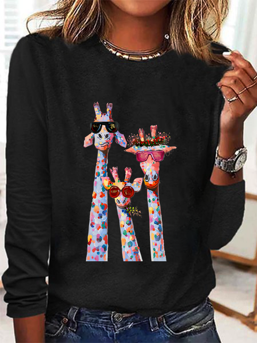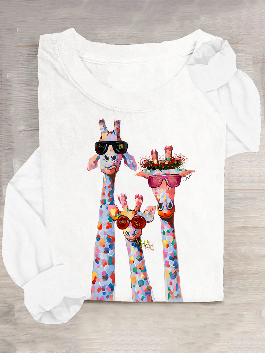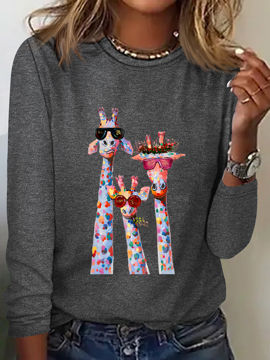Women's Oil Painting Funny Giraffe Print Casual Long Sleeve Shirt