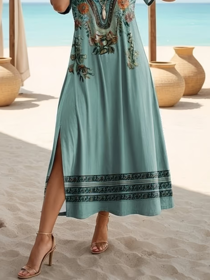Women's Short Sleeve Summer Green Floral Printing Crew Neck Daily Going Out Casual Maxi H-Line T-Shirt Dress Dress