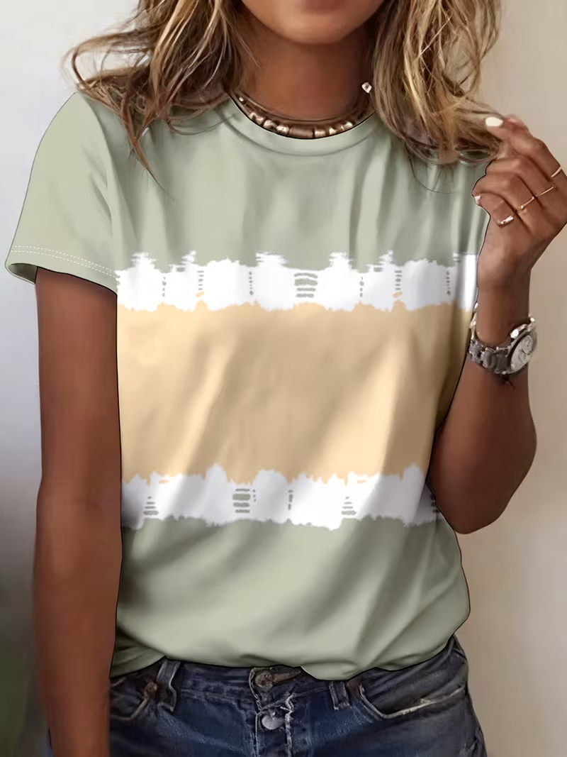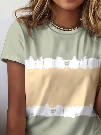 Women's Short Sleeve T-shirt Summer Green Abstract Printing Jersey Crew Neck Daily Going Out Casual Top