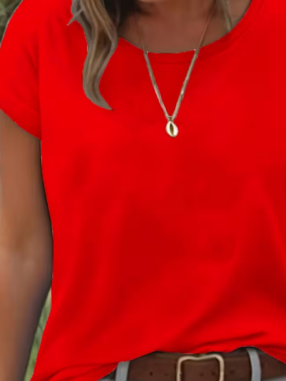 Women's Short Sleeve T-shirt Summer Red Plain Printing Jersey Crew Neck Daily Going Out Casual Top