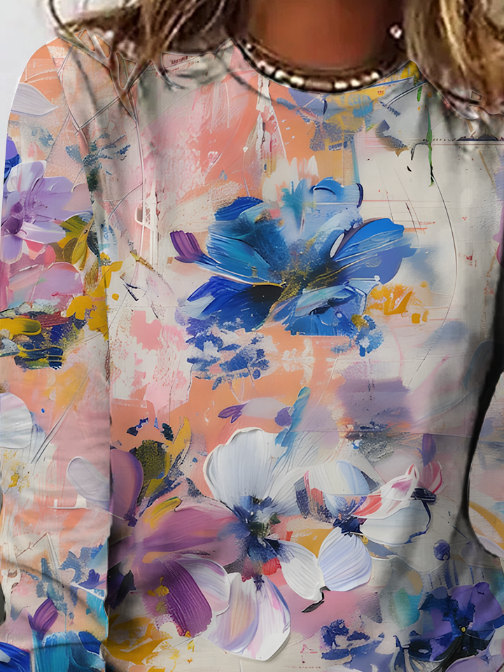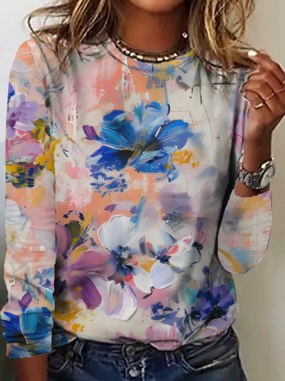 Women's Vintage Art Floral Print Crew Neck Casual T-Shirt