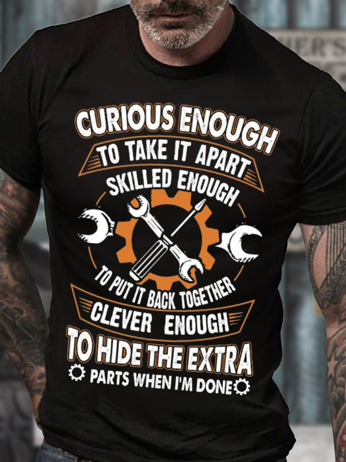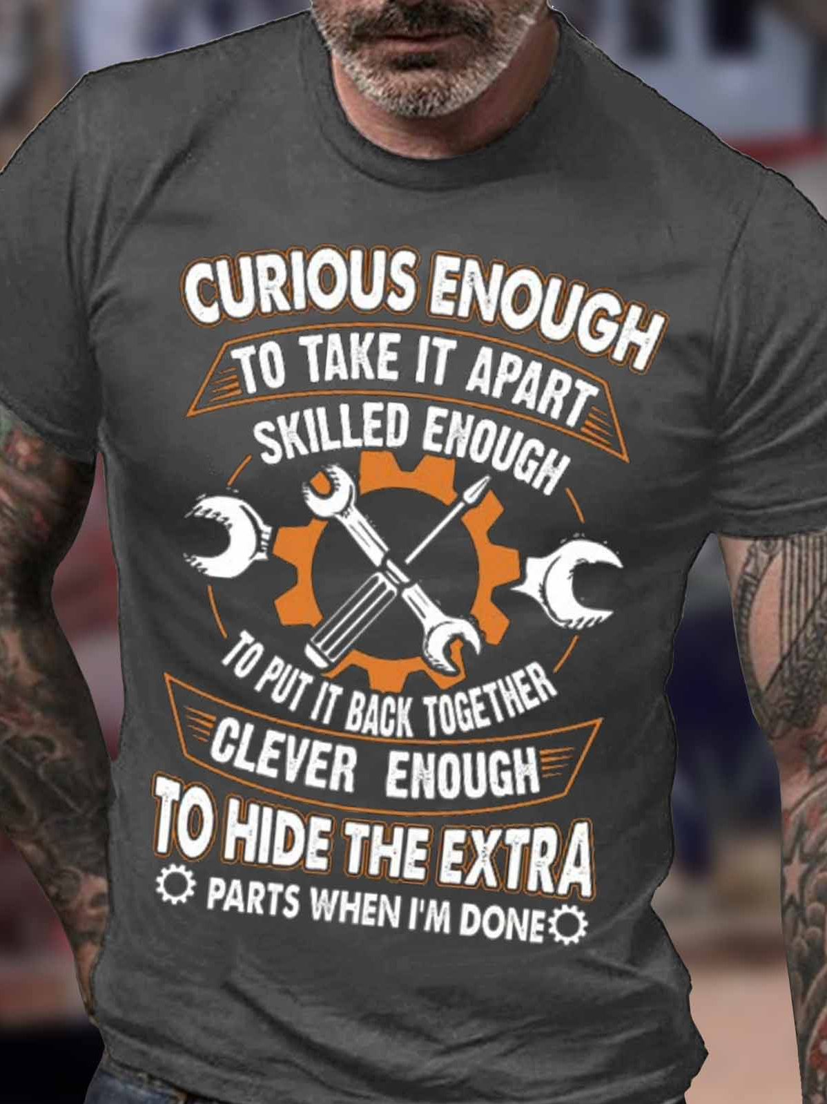Men's Curious Enough To Take It Apart Skilled Enough To Put It Back Together Funny Graphic Print Cotton Loose Casual Crew Neck T-Shirt
