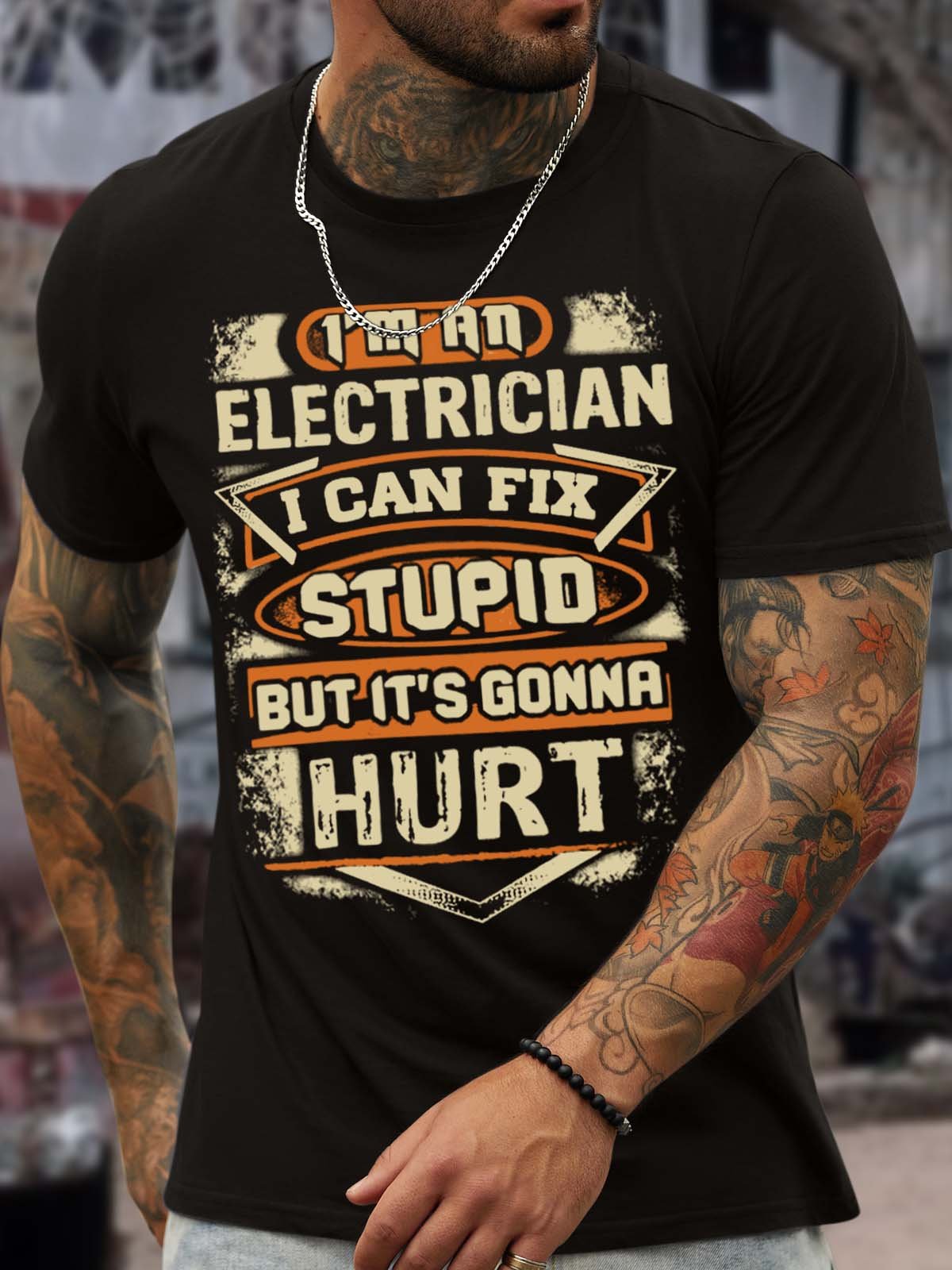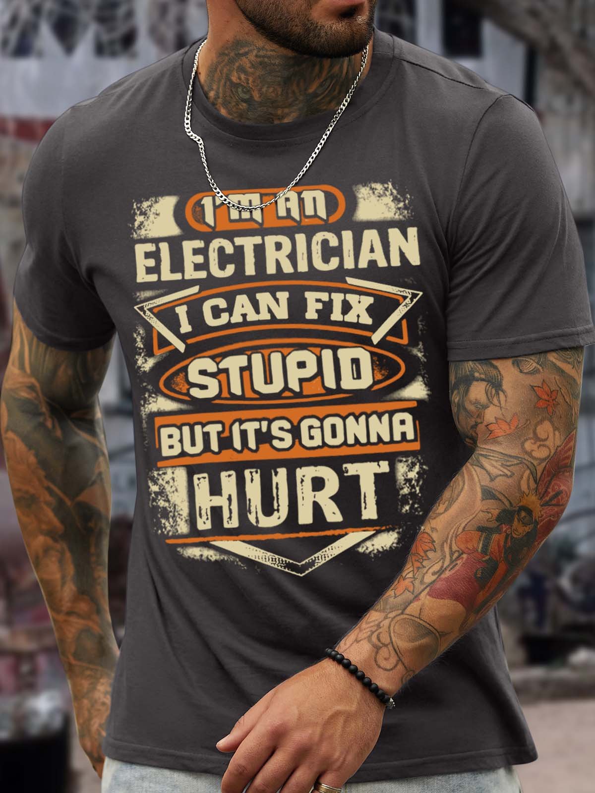 Men’s I’m An Electrician I Can Fix Stupid But It’s Gonna Hurt Text Letters Casual Regular Fit Crew Neck T-Shirt