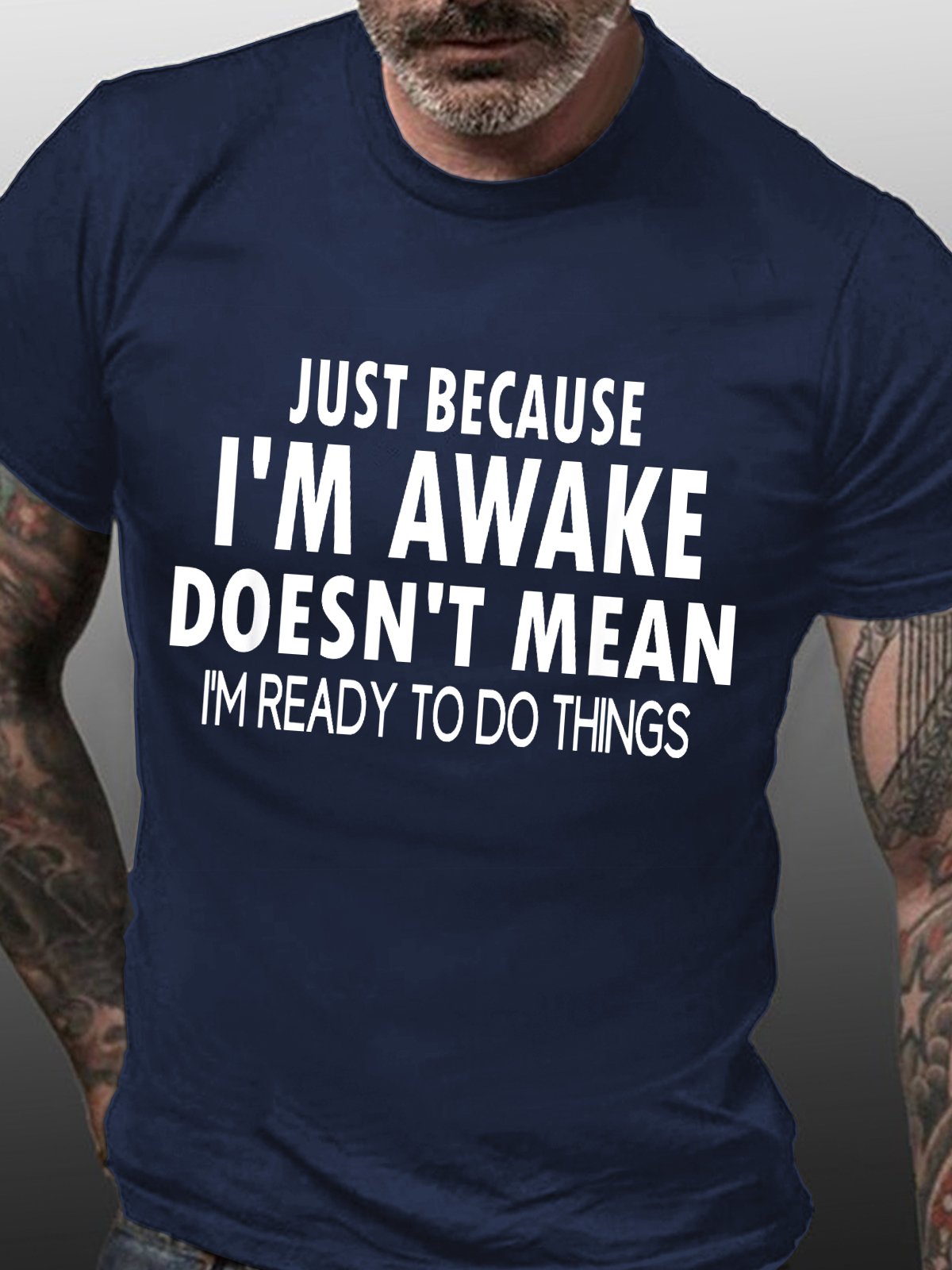 Men's Funny Word Just Because I'm Awake Text Letters Loose Casual T-Shirt