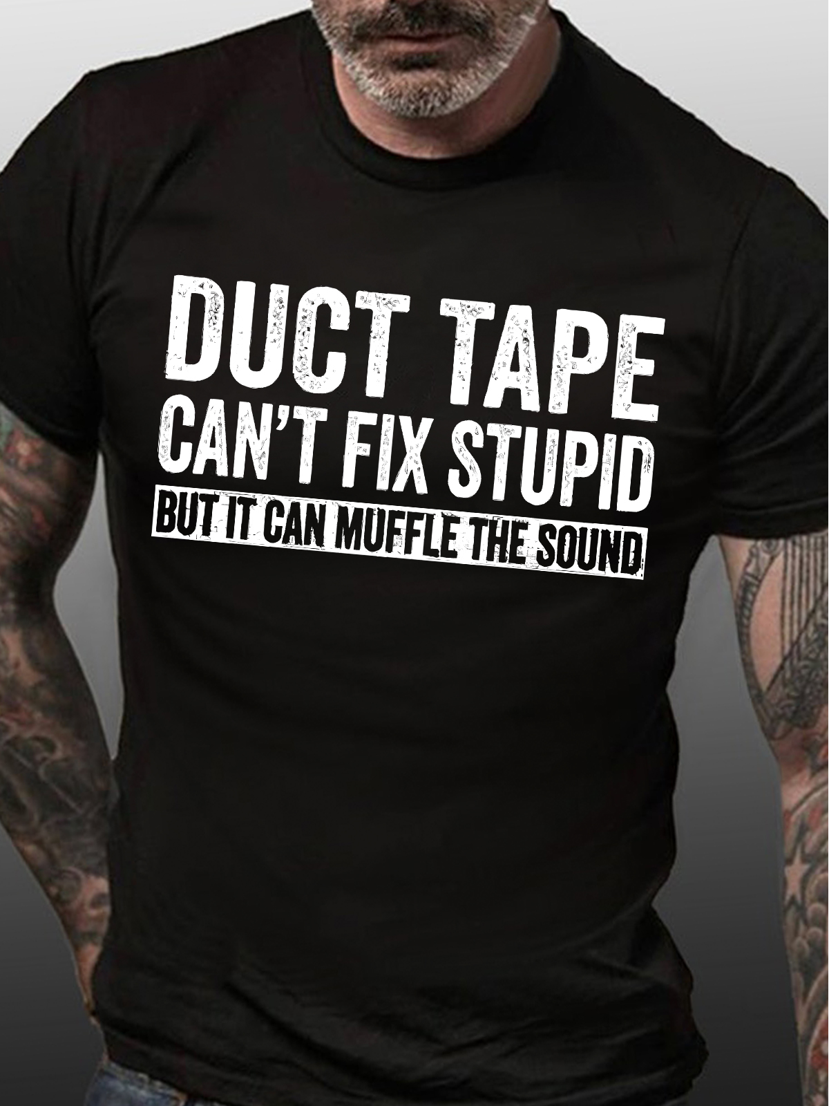 Men's Duct Tape Can't Fix Stupid But It Can Muffle The Sound Casual Crew Neck Regular Fit Text Letters T-Shirt